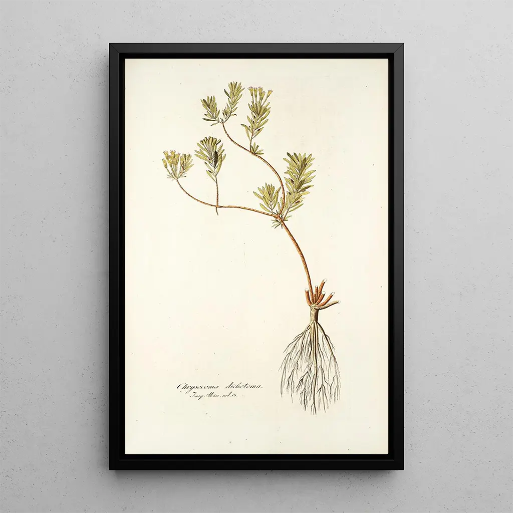 Chrysocoma dichotoma : una celebración de la flora silvestre El cuadro Chrysocoma dichotoma de Nikolaus Joseph Freiherr von Jacquin es una verdadera celebración de la naturaleza. Con sus tonalidades doradas y verdes, esta obra evoca la luz del sol filtrándose a través de las hojas. La precisión de los detalles, lograda mediante la técnica de la acuarela, resalta la delicadeza de las flores y los tallos. Esta obra, a la vez científica y artística, invita a admirar la belleza de las plantas, al tiempo que testimonia el asombro del artista ante la biodiversidad. Nikolaus Joseph Freiherr von Jacquin : un maestro del arte botánico Nikolaus Joseph Freiherr von Jacquin, botánico y artista del siglo XVIII, marcó su época con sus ilustraciones precisas y poéticas. Sus viajes por América del Sur enriquecieron sus conocimientos botánicos e influyeron en su estilo. Supo combinar ciencia y arte, rindiendo homenaje a la riqueza de la flora. Sus obras, como Chrysocoma dichotoma, son testimonios de su compromiso con la naturaleza y su deseo de compartir su belleza con el mundo. Como pionero en el campo de la ilustración botánica, dejó un legado duradero en la historia del arte. Una adquisición decorativa con múltiples ventajas La impresión artística de Chrysocoma dichotoma es una elección perfecta para embellecer su espacio vital. Ya sea en una sala de estar, una oficina o un dormitorio, esta obra aporta un toque de naturaleza y serenidad. La calidad de impresión garantiza una fidelidad en los colores y detalles de la obra original, permitiendo apreciar plenamente la belleza de la planta. Con su atractivo estético, esta obra cautivará a los amantes de la botánica y del arte, convirtiéndola en una adición valiosa a su decoración interior.