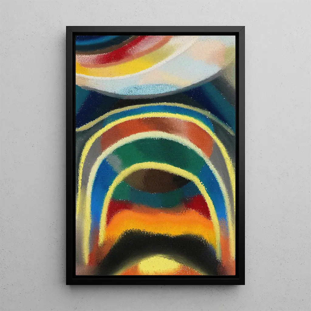 Los "Círculos de luz arcoíris cósmico" de Otto Freundlich son una verdadera celebración del color y la forma. Esta obra, realizada en un estilo abstracto, evoca una sensación de movimiento y dinamismo gracias a sus círculos concéntricos que parecen flotar en el espacio. Los tonos vibrantes, que van desde rojos profundos hasta azules relajantes, crean una atmósfera a la vez alegre y meditativa. La técnica de Freundlich, que combina pintura y escultura, da vida a esta obra, transformando el espacio en un universo donde la luz y el color se entrelazan armoniosamente.