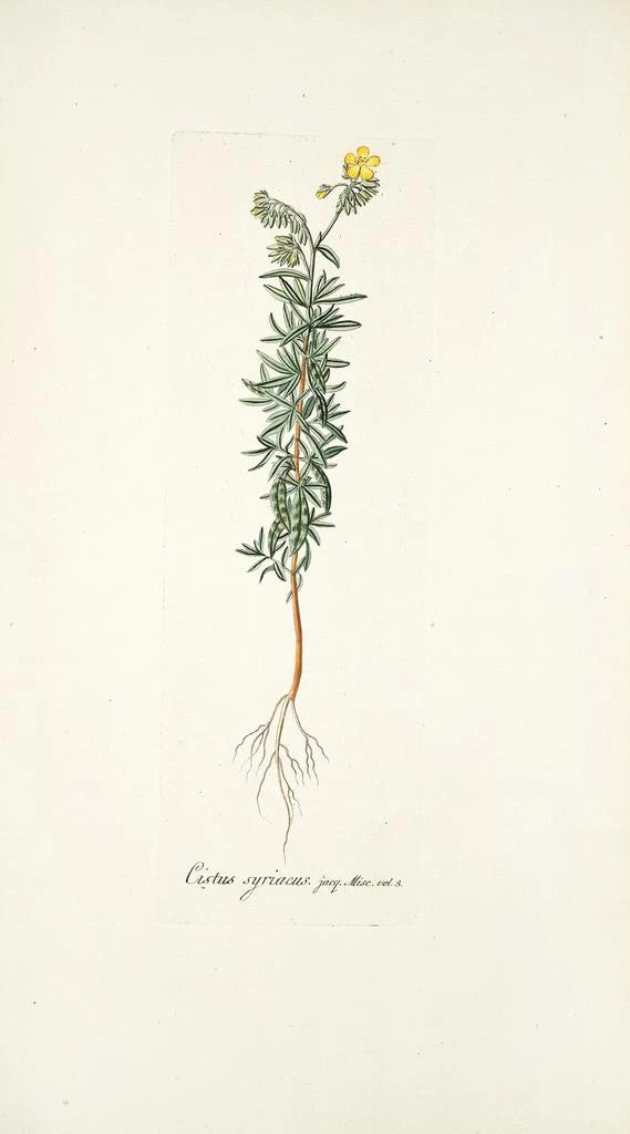 Nikolaus Joseph Freiherr von Jacquin, activo en el siglo XVIII, es reconocido por su contribución a la botánica y al arte floral. Su formación en la Universidad de Viena y sus viajes por Europa enriquecieron su comprensión de las plantas. Influenciado por los descubrimientos científicos de su tiempo, Jacquin supo combinar precisión y estética en sus obras, como Cistus syriacus. Sus ilustraciones no solo documentaron la flora, sino que también inspiraron un interés creciente por la botánica artística, convirtiéndolo en una figura emblemática de esa época.