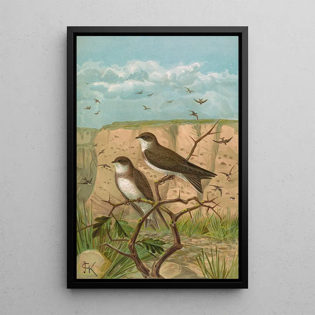 La impresión artística de Clivicola riparia, a menudo llamada el rousserolle, nos transporta al vibrante mundo de las zonas húmedas. Este cuadro destaca a este ave con un plumaje discreto, pero con una presencia cautivadora, que se desplaza con facilidad entre los juncos y los ríos. Los tonos terrosos y las sutiles variaciones de verde y marrón evocan la calidez de los paisajes naturales, mientras que la técnica del artista resalta la delicada belleza de este ave. La atmósfera tranquila que emana de la obra invita a una contemplación silenciosa, un momento suspendido en el tiempo.