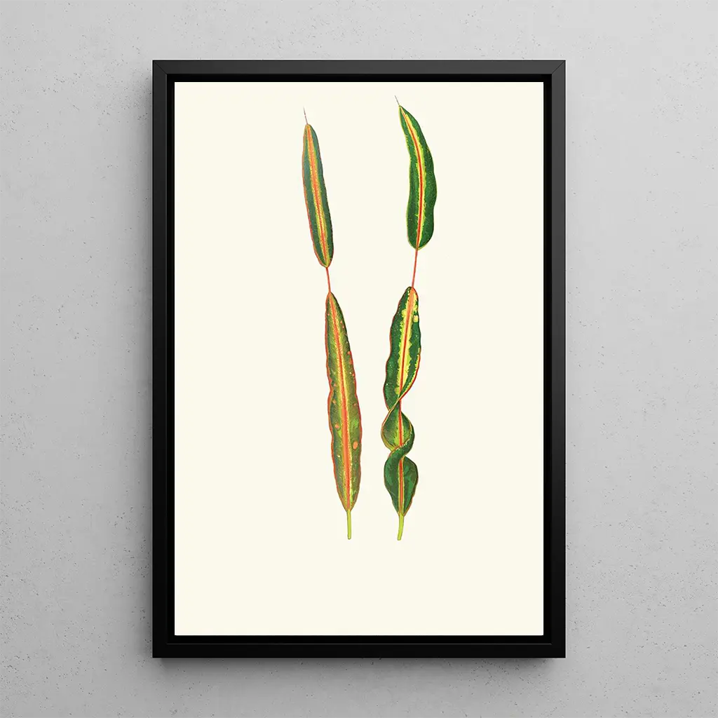 La impresión artística de Codlaeum Interruptum de Edward Joseph Lowe nos transporta al corazón de un jardín exuberante, donde cada hoja cuenta una historia. Las tonalidades de verde, salpicadas de toques de rojo y amarillo, crean un cuadro vivo y dinámico. La técnica del artista, que combina observación minuciosa e interpretación personal, permite sentir la energía de esta planta única. La atmósfera que emana de esta obra es a la vez relajante y estimulante, invitando a la ensoñación y a la evasión en un mundo natural lleno de vida.
