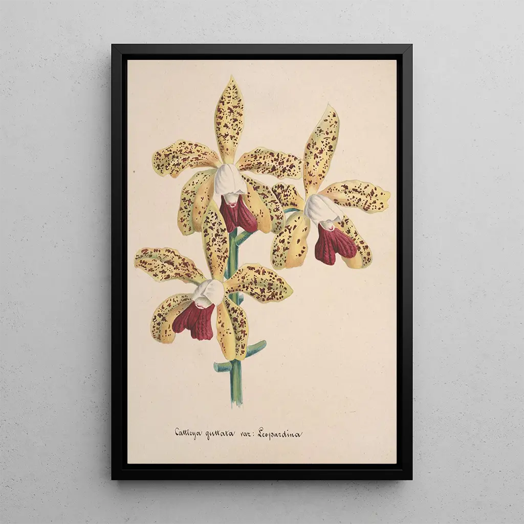 El artista anónimo de esta obra se inscribe en una tradición artística rica, donde las flores, y en particular las orquídeas, son celebradas por su belleza y simbolismo. Esta obra proviene de una época en la que el arte floral experimentaba un auge, especialmente en el siglo XIX, cuando las exploraciones botánicas fascinaban al público. Aunque la identidad del artista se ha perdido en el tiempo, su obra demuestra una gran maestría técnica y sensibilidad hacia la naturaleza. Las influencias de la época, marcadas por un interés creciente en la botánica y la estética floral, se reflejan en esta composición vibrante y llena de vida.