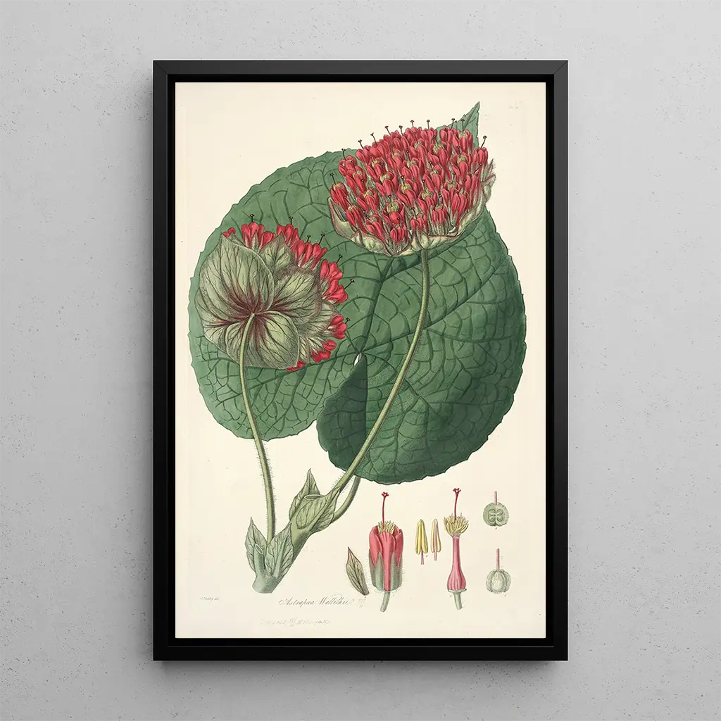 La impresión artística de Collectanea botanica Pl14 nos sumerge en un universo lleno de colores y detalles. Cada planta está representada con una precisión notable, destacando la belleza y la complejidad de la naturaleza. Los tonos vibrantes de las flores contrastan con las matices más suaves de las hojas, creando una armonía visual que atrae la mirada. La técnica de grabado utilizada por John Lindley permite capturar las texturas delicadas de los pétalos y los tallos, ofreciendo una atmósfera a la vez científica y poética. Este cuadro es una verdadera invitación a explorar la biodiversidad y a apreciar la esplendor del mundo vegetal.