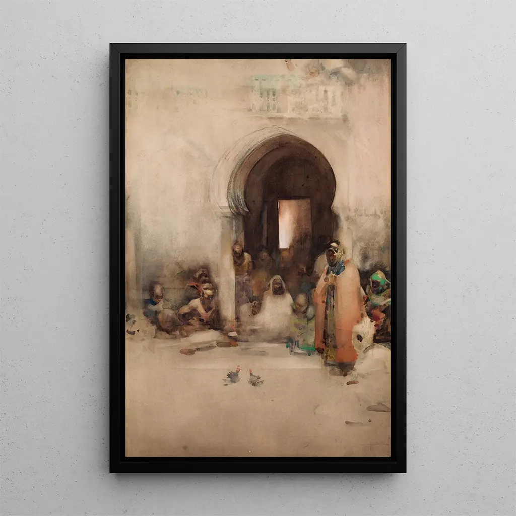 Combat de gallos : un duelo vibrante de colores y pasiones En esta obra impactante, "Combat de gallos", Arthur Melville captura la intensidad de un enfrentamiento entre dos gallos, símbolos de valentía y rivalidad. Los colores vibrantes, que van desde rojos profundos hasta amarillos brillantes, crean una atmósfera eléctrica, casi palpable. La técnica de Melville, que combina acuarela y óleo, da vida a las plumas de los pájaros y a la energía del momento. Cada pincelada parece vibrar, llevando al espectador a este combate donde la naturaleza salvaje se revela en toda su esplendor. Arthur Melville: un maestro del movimiento y de la luz Arthur Melville, pintor escocés del siglo XIX, es reconocido por su capacidad para capturar la luz y el movimiento en sus obras. Influenciado por el movimiento impresionista, supo integrar elementos de la pintura orientalista, lo que le permitió destacarse en el mundo artístico de su época. Sus viajes por España y Marruecos enriquecieron su estilo, permitiéndole explorar temas variados, desde escenas de la vida cotidiana hasta representaciones de la fauna. Melville dejó un legado duradero, inspirando a numerosos artistas a través de las generaciones. Una adquisición decorativa con múltiples ventajas La impresión artística de "Combat de gallos" es una pieza decorativa que aportará un toque de originalidad a su interior. Ya sea en una sala de estar, una oficina o un dormitorio, este cuadro atrae la mirada y despierta la curiosidad. La calidad de la impresión artística garantiza una fidelidad notable a los detalles de la obra original, permitiendo disfrutar de la energía y la pasión que transmite. Con su atractivo estético indiscutible, este lienzo se convierte en un elemento central de su decoración, invitando a la contemplación y a la discusión.