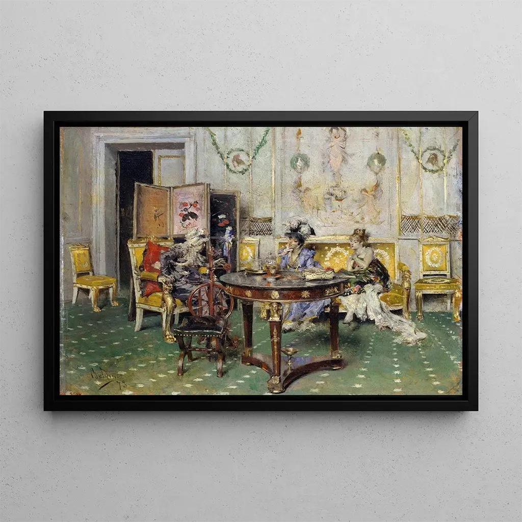 Commérages : una escena de vida vibrante y elegante En "Commérages", Giovanni Boldini captura la esencia de una época con una maestría inigualable. La obra de impresión artística representa una escena animada donde personajes elegantemente vestidos participan en intercambios animados. Los colores vivos y los trazos fluidos transmiten una atmósfera de dinamismo y sofisticación. Los detalles refinados de los trajes y los rostros revelan una atención minuciosa a la luz y la sombra, creando una profundidad que atrae la mirada. Esta obra es una verdadera invitación a sumergirse en el universo social de la Belle Époque, donde cada personaje parece contar una historia. Giovanni Boldini : el retratista de las elegancias modernas Giovanni Boldini, nacido en 1842 en Ferrara, es una figura emblemática del movimiento impresionista y del retratismo a finales del siglo XIX. Influenciado por los grandes maestros como Manet y Degas, se distingue por su estilo llamativo y su capacidad para capturar el movimiento. Sus obras, a menudo centradas en la alta sociedad, testimonian una época en la que la elegancia y el refinamiento estaban en su apogeo. Boldini supo imponerse en los salones parisinos, convirtiéndose en el retratista de las celebridades de su tiempo. Su legado artístico perdura, haciendo de él una referencia imprescindible para comprender la estética de su época. Una adquisición decorativa con múltiples ventajas La impresión artística de "Commérages" es una elección ideal para enriquecer su decoración interior. Ya sea en una sala de estar, una oficina o un dormitorio, este cuadro aporta un toque de sofisticación y dinamismo. Su calidad de reproducción garantiza una fidelidad a los detalles y colores de la obra original, permitiendo disfrutar del arte de Boldini en su espacio vital. El atractivo estético de esta obra no dejará de suscitar la admiración de sus invitados, mientras crea un ambiente cálido y acogedor.