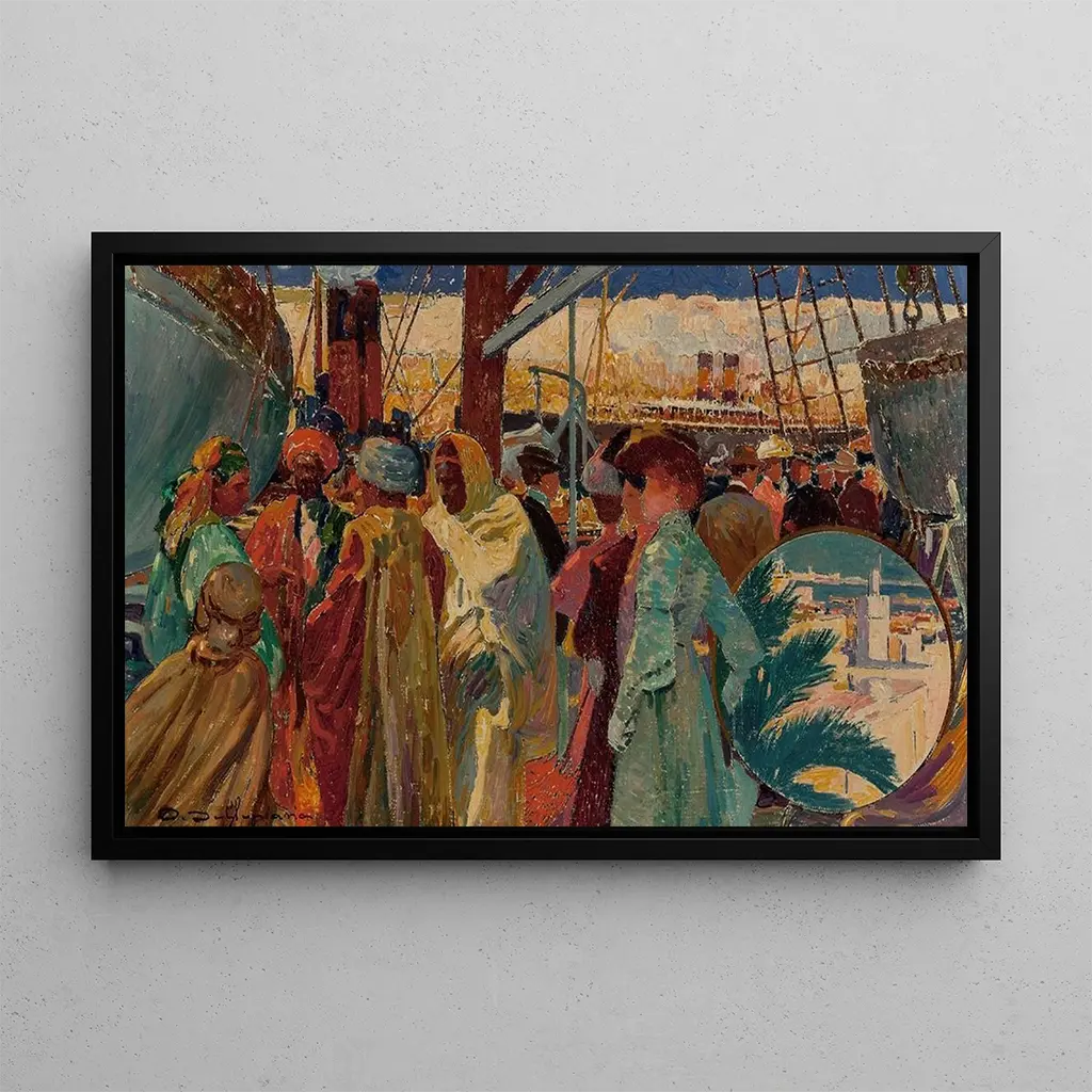 Compagnie Transatlantique Algérie-Tunisie : un voyage à travers le temps Compagnie Transatlantique Algérie-Tunisie, œuvre de David Dellepiane, évoque un voyage nostalgique sur les mers. Ce tableau, riche en détails, représente une scène maritime animée, où les navires se côtoient dans un cadre vibrant. Les couleurs chatoyantes, allant des bleus profonds aux ocres chaleureux, créent une atmosphère à la fois dynamique et accueillante. Dellepiane, avec sa maîtrise des lumières et des ombres, parvient à capturer l'essence de l'époque des grandes traversées maritimes, invitant le spectateur à s'immerger dans cette aventure. David Dellepiane : un témoin de l'ère maritime David Dellepiane, artiste du XIXe siècle, est reconnu pour ses œuvres qui célèbrent la vie maritime et les voyages. Influencé par le mouvement romantique, il a su capturer la majesté des navires et la beauté des paysages marins. Son travail s'inscrit dans une période où le transport maritime était en plein essor, symbolisant la découverte et l'échange culturel. Compagnie Transatlantique Algérie-Tunisie reflète cette époque de prospérité et d'exploration, tout en mettant en avant le savoir-faire artistique de Dellepiane, qui a su immortaliser ces moments fugaces. Une acquisition décorative aux multiples atouts La reproduction de Compagnie Transatlantique Algérie-Tunisie est un choix idéal pour embellir votre espace de vie. Que ce soit dans un salon, un bureau ou une chambre, cette toile apportera une touche d'élégance et de caractère. Sa qualité d'impression assure une fidélité aux couleurs et aux détails de l'œuvre originale, permettant de profiter de son atmosphère captivante. Avec son attrait esthétique et son histoire, cette reproduction est bien plus qu'un simple tableau ; c'est une invitation à voyager à travers le temps et l'espace.