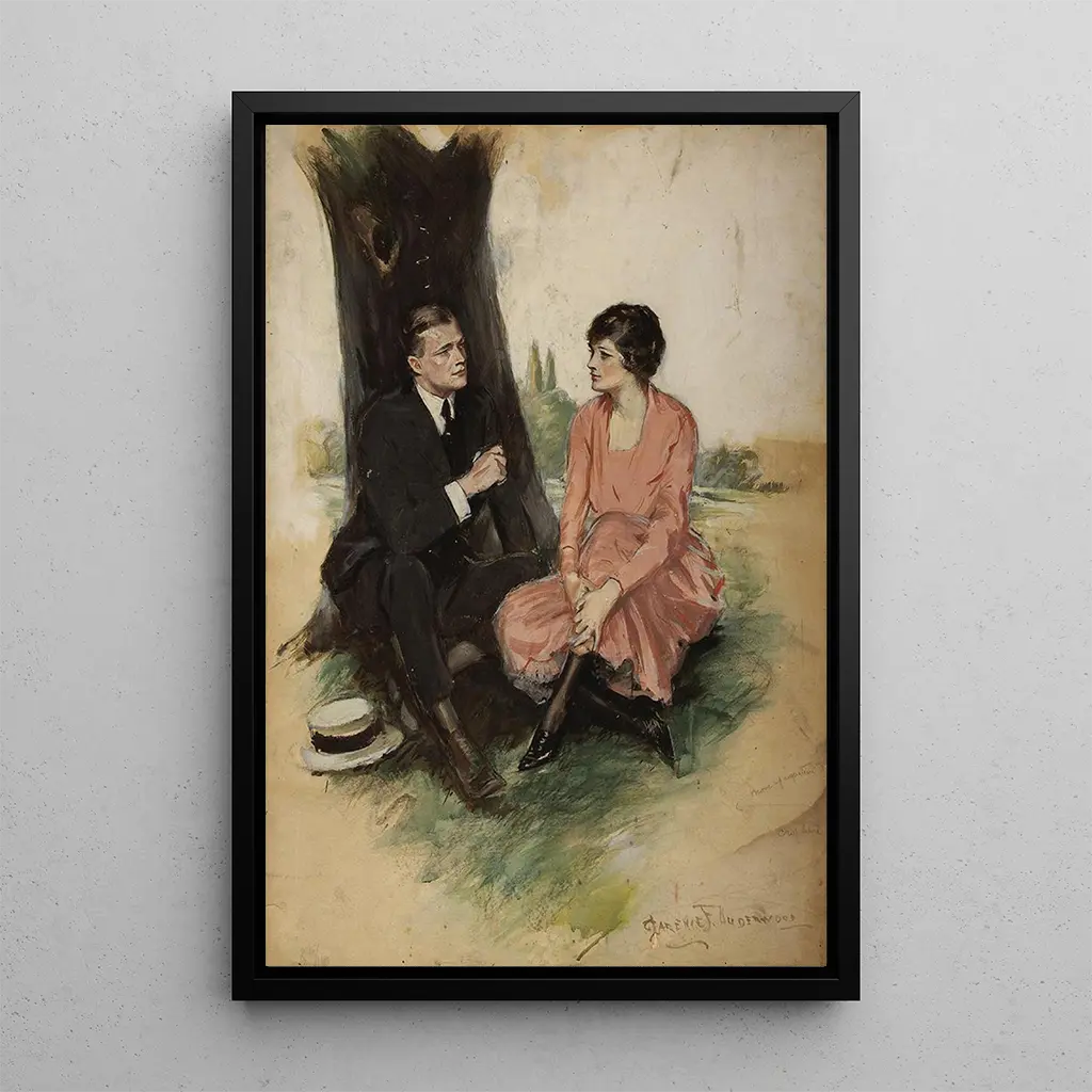 Clarence F. Underwood, nacido en 1864, es un ilustrador y pintor estadounidense que marcó su época por sus representaciones de la feminidad y la vida cotidiana. Su estilo, influenciado por el movimiento Art nouveau, se caracteriza por líneas fluidas y composiciones armoniosas. A lo largo de su carrera, colaboró con revistas y casas editoriales, lo que permitió que su trabajo alcanzara a un amplio público. "Con principios no divulgados" ilustra perfectamente su talento para capturar momentos de emoción e inocencia, reflejando también los valores y aspiraciones de la sociedad de su tiempo.