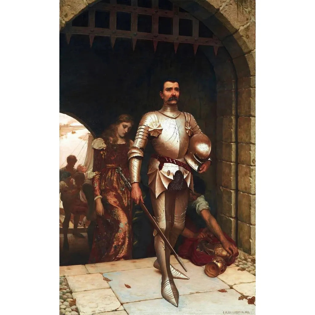 Conquista : una oda a la valentía y a la pasión La impresión artística "Conquista" de Edmund Blair Leighton representa una escena vibrante donde el heroísmo y el romance se encuentran. Los colores cálidos, dominados por rojos y dorados, infunden una energía dinámica a la obra. La técnica de Leighton, caracterizada por detalles minuciosos y una iluminación sutil, crea una atmósfera a la vez dramática y romántica. Los personajes, vestidos con armaduras brillantes, parecen capturar un momento de triunfo, donde la valentía es celebrada. Esta obra invita al espectador a sumergirse en un universo donde el honor y el amor se entrelazan, provocando una reflexión sobre los sacrificios realizados por la gloria y la pasión. Edmund Blair Leighton : el maestro del romanticismo victoriano Edmund Blair Leighton, activo a finales del siglo XIX, es reconocido por sus representaciones idealizadas de la vida medieval y de los temas románticos. Influenciado por el movimiento prerrafaelista, se ha dedicado a capturar la belleza y la emoción a través de composiciones narrativas. Su obra, a menudo impregnada de nostalgia, refleja las aspiraciones de una época que valoraba el pasado. Leighton supo destacarse por su estilo distintivo, combinando precisión técnica y sensibilidad poética. "Conquista" se inscribe en esta línea, ilustrando su habilidad para evocar relatos épicos mientras celebra las emociones humanas. Una adquisición decorativa con múltiples ventajas Optar por la impresión artística de "Conquista" en su interior, es elegir una pieza que enriquece su decoración mientras cuenta una historia cautivadora. Ya sea en una sala de estar, una oficina o un dormitorio, este cuadro atrae la mirada y suscita admiración. La calidad de la impresión artística garantiza una fidelidad a los detalles originales, permitiendo disfrutar de la estética de Leighton en su espacio. Con su atractivo visual y su ambiente romántico, esta obra se convierte en un elemento central de su decoración, aportando un toque de elegancia y carácter a su interior.