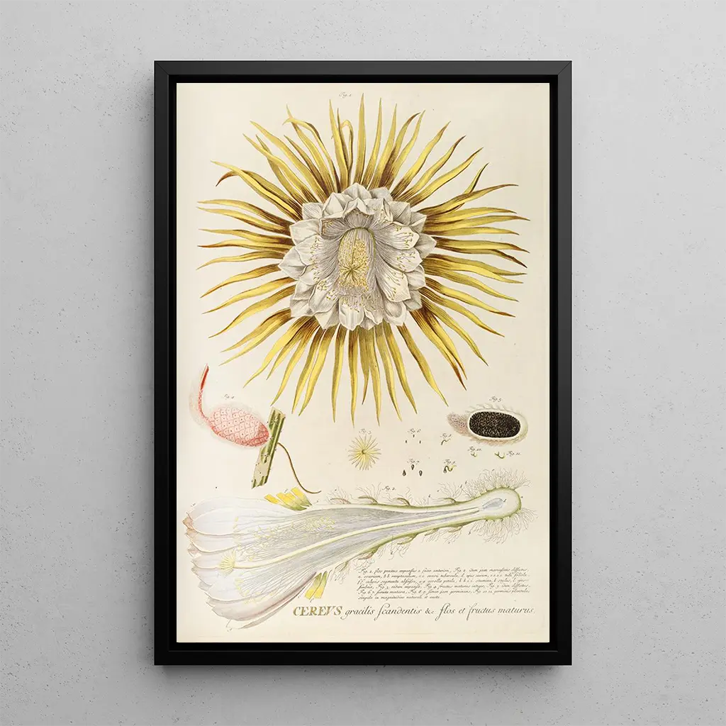 Cierge IV : una danza de luz y naturaleza En esta obra cautivadora, Cierge IV, Georg Dionysius Ehret nos transporta a un universo donde la naturaleza y la luz se entrelazan. La composición destaca una delicada armonía de colores, oscilando entre tonos vibrantes y matices más suaves, creando así una atmósfera apacible. La técnica del acuarela, utilizada con maestría, permite reproducir la transparencia de los pétalos y la luminosidad de las hojas, dando vida a cada detalle. Este cuadro evoca una contemplación serena, donde cada elemento parece vibrar bajo el efecto de una luz suave y envolvente. Georg Dionysius Ehret : un pionero de la ilustración botánica Georg Dionysius Ehret, activo en el siglo XVIII, es reconocido como uno de los artistas más influyentes en el campo de la ilustración botánica. Su obra se distingue por una precisión científica combinada con una sensibilidad artística rara. Criado en Alemania, fue fuertemente influenciado por los descubrimientos botánicos de su época, lo que le llevó a colaborar con naturalistas de renombre. Su estilo rococó, caracterizado por formas fluidas y detalles minuciosos, dejó una huella indeleble en el mundo del arte. Cierge IV encaja perfectamente en esta tradición, celebrando la belleza de la naturaleza mientras responde a las exigencias científicas de su tiempo. Una adquisición decorativa con múltiples ventajas La impresión artística de Cierge IV es una pieza decorativa ideal para enriquecer su interior, ya sea en una sala de estar, una oficina o un dormitorio. Su calidad de impresión y su fidelidad a la obra original garantizan un resultado estético excepcional, aportando un toque de sofisticación a su espacio. Este cuadro, con sus matices delicados y su luz apacible, invita a la ensoñación y a la contemplación. Al elegir esta impresión artística, opta por una obra que no solo embellece, sino que también cuenta una historia, la de un artista apasionado por la naturaleza y la ciencia.