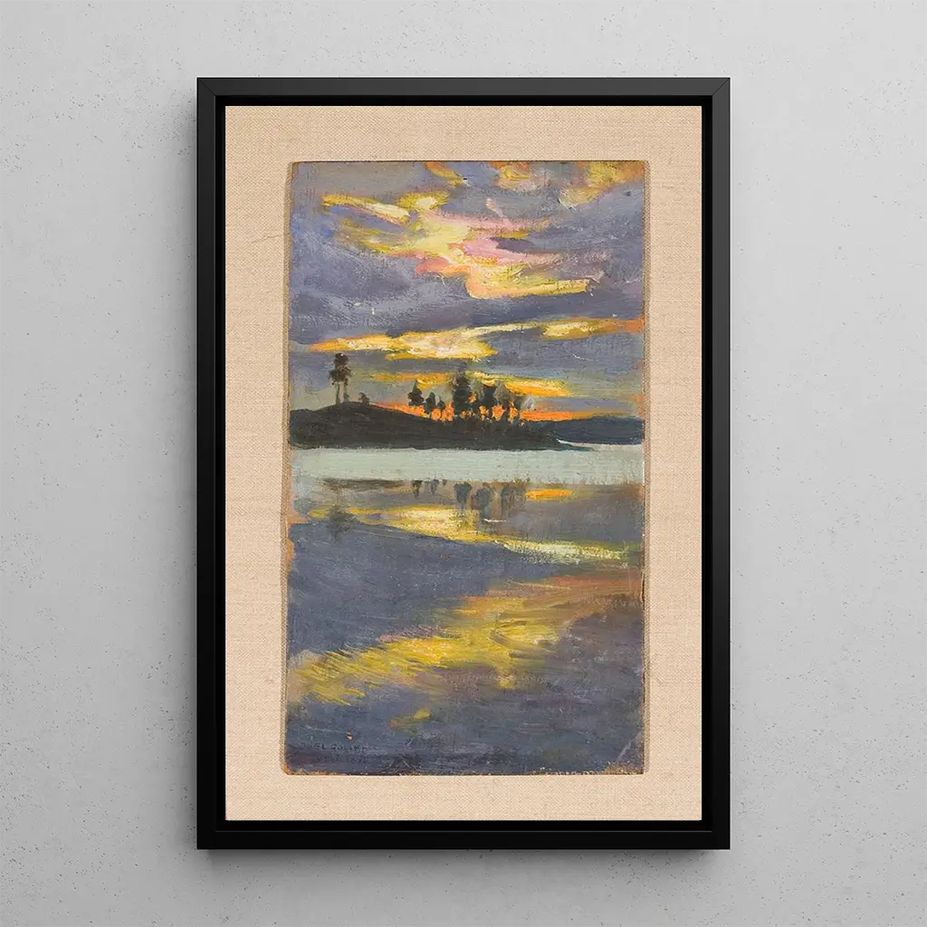 La impresión artística de Crépúsculo de la tarde constituye una elección decorativa elegante para embellecer su espacio vital. Ya sea en una sala de estar, una oficina o un dormitorio, este lienzo aportará un toque de serenidad y calidez a su decoración. La calidad de la impresión artística asegura una fidelidad notable a los colores y matices de la obra original, permitiendo a cada uno disfrutar de su atractivo estético. Al integrar esta obra en su interior, crea un ambiente apacible, donde la belleza del crepúsculo finlandés puede ser admirada a diario.