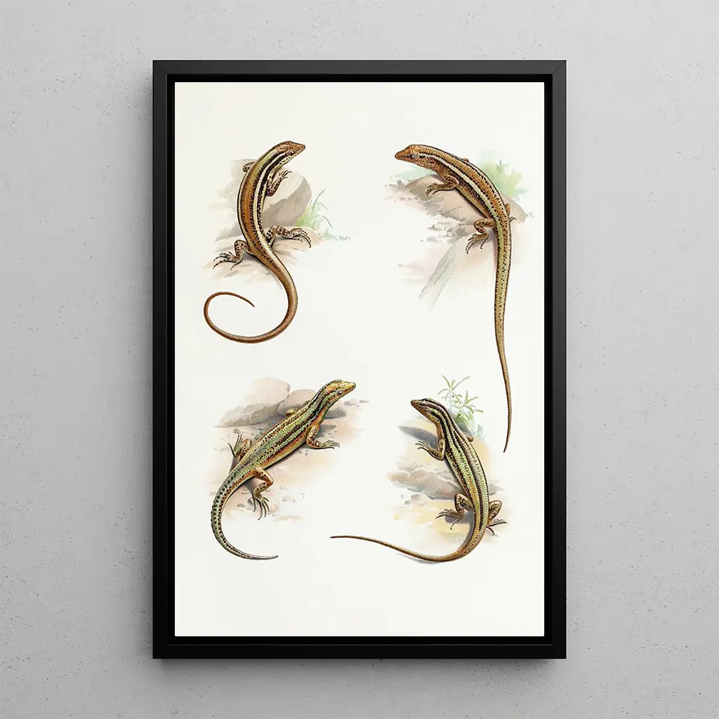 Cryptoblepharus : un regard sur la belleza reptiliana En esta impresión artística de Cryptoblepharus, el artista Thomas Barbour captura la esencia fascinante de este reptil. Los detalles minuciosos de la piel, con sus escamas delicadamente representadas, crean una atmósfera casi viva. Las tonalidades de verde y marrón se mezclan armoniosamente, evocando los hábitats naturales del animal. La luz juega sobre las superficies, acentuando la textura y la profundidad de la obra. Barbour logra transmitir una sensación de calma y curiosidad, invitando al espectador a contemplar la belleza a menudo pasada por alto de las criaturas reptilianas. Thomas Barbour : un pionero de la impresión artística zoológica Thomas Barbour, naturalista e ilustrador del siglo XX, dedicó su vida al estudio y a la representación de especies animales. Su trabajo se encuentra en la intersección del arte y la ciencia, donde supo combinar precisión científica y estética. Influenciado por las exploraciones naturalistas de su época, Barbour contribuyó a la documentación de muchas especies, algunas de las cuales están en peligro hoy en día. Sus obras, como esta impresión artística de Cryptoblepharus, reflejan la importancia de la biodiversidad y la necesidad de preservarla. Su estilo único, que combina realismo y sensibilidad, marcó la ilustración zoológica. Una adquisición decorativa con múltiples ventajas La impresión artística de Cryptoblepharus es una pieza decorativa que encaja perfectamente en diversos espacios, ya sea un salón, una oficina o un dormitorio. Su calidad de impresión y fidelidad a los detalles originales la convierten en una elección ideal para los amantes de la naturaleza y del arte. Este cuadro aporta un toque de elegancia y curiosidad, fomentando conversaciones sobre la belleza del mundo animal. Al elegir esta obra, opta por una pieza que enriquece su decoración mientras celebra la riqueza de la fauna.