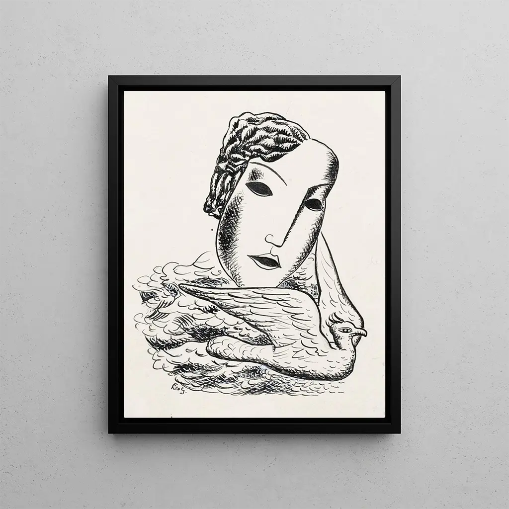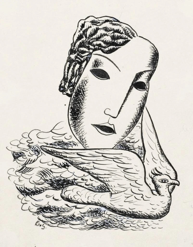 Boceto de una cabeza de mujer con un pájaro - Leo Gestel