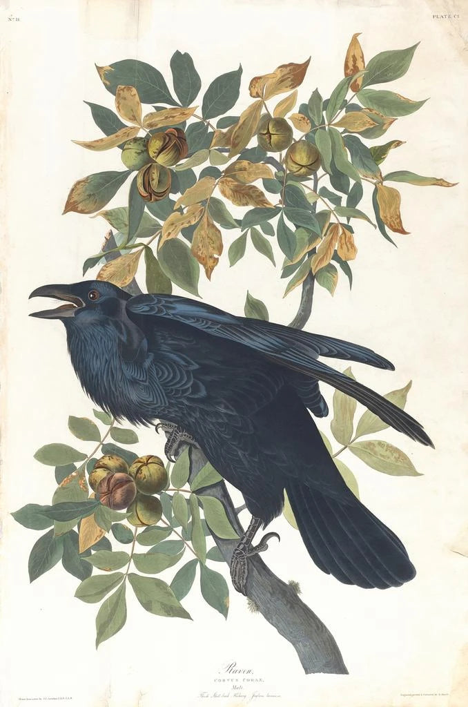 El cuadro Corneja de John James Audubon captura la esencia misma de este ave fascinante. Con detalles minuciosos, el artista resalta el plumaje negro brillante de la corneja, contrastando con matices de azul y verde en el fondo. La técnica de la acuarela, combinada con trazos precisos, da vida a esta emblemática ave. La atmósfera que emana de esta obra es a la vez misteriosa y majestuosa, invitando al espectador a cuestionar la simbología de este animal, a menudo asociado con la sabiduría y el conocimiento.