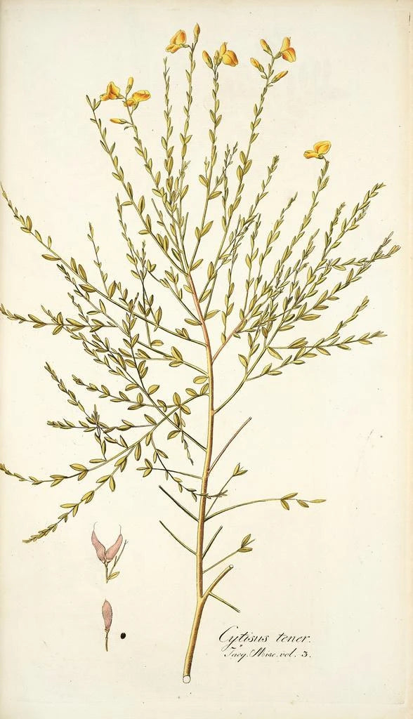 Nikolaus Joseph Freiherr von Jacquin, nacido en 1727, es una figura emblemática de la botánica del siglo XVIII. Su obra se inscribe en el movimiento de la ciencia y el arte, donde supo combinar sus habilidades de botánico con su talento artístico. Influenciado por los viajes y los descubrimientos científicos de su época, Jacquin dedicó su vida al estudio de las plantas, especialmente durante sus expediciones en las Antillas. Sus ilustraciones botánicas, como la de Cytisus tener, son no solo obras de arte, sino también valiosos documentos científicos que testimonian la diversidad floral de su tiempo.