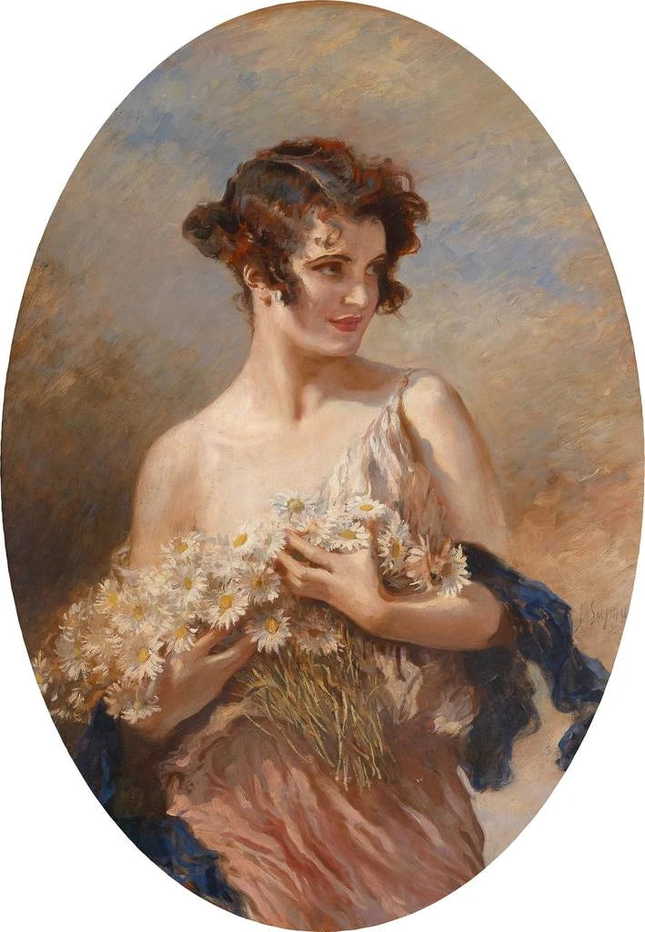 Impresión artística | Dama con un ramo de margaritas - Leopold Schmutzler