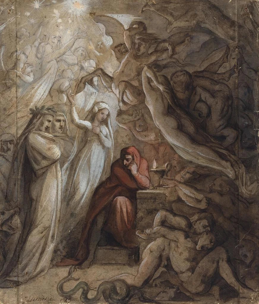Dante meditando sobre la Divina Comedia - Jean-Jacques Feuchère