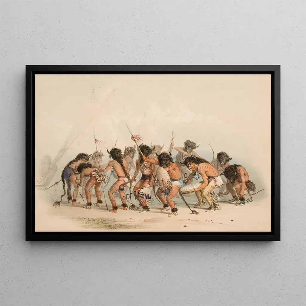 La impresión artística de Danse des bisons de George Catlin nos sumerge en un mundo vibrante donde la fauna y la cultura indígena se entrelazan. Esta obra, realizada con colores terrosos y toques de luz, evoca la majestuosidad de los bisontes en su hábitat natural. Los movimientos dinámicos de los animales, capturados con una técnica de pintura al óleo, transmiten una energía palpable. Catlin, con su mirada atenta, logra inmortalizar no solo a los bisontes, sino también el espíritu de la caza y la profunda conexión entre el hombre y la naturaleza.