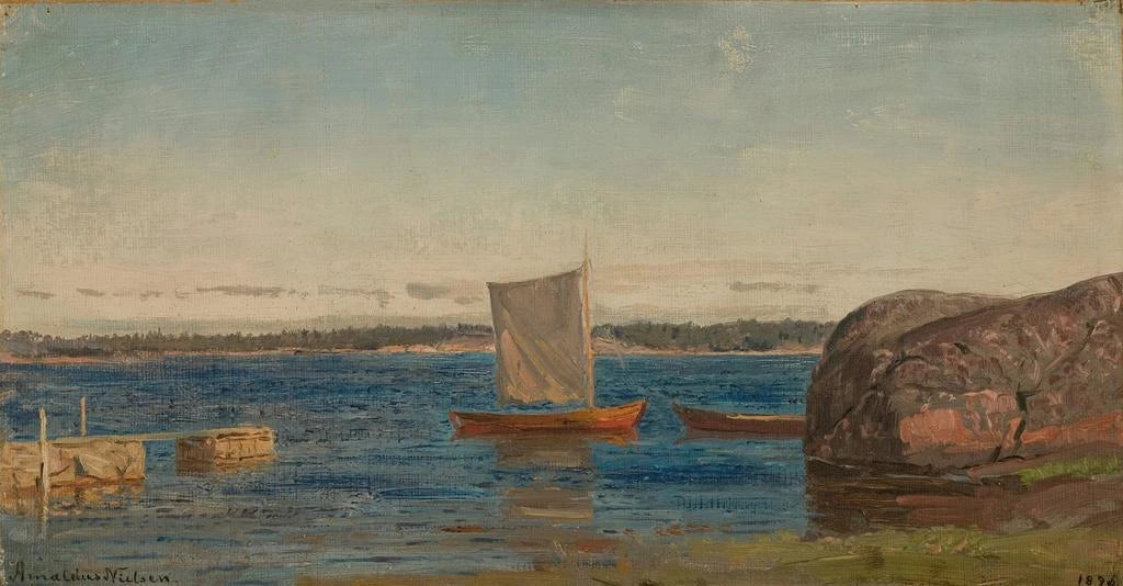 De Hvaler : una escena marítima llena de serenidad La impresión artística De Hvaler de Amaldus Nielsen captura la belleza tranquila de los paisajes costeros noruegos. Este lienzo representa una vista panorámica de las islas Hvaler, donde el mar se mezcla armoniosamente con la tierra. Las tonalidades de azul y verde se funden delicadamente, evocando una atmósfera pacífica y contemplativa. La técnica de Nielsen, caracterizada por trazos de pincel fluidos y una atención meticulosa a los detalles, permite sentir la brisa marina y el brillo del sol sobre el agua. Cada elemento de la composición, desde las rocas hasta las velas de los barcos, contribuye a crear una invitación a la evasión. Amaldus Nielsen : un maestro del paisaje escandinavo Amaldus Nielsen, activo en el siglo XIX, es reconocido por sus paisajes marinos y sus representaciones de la naturaleza noruega. Influenciado por el romanticismo, su obra refleja una profunda admiración por la belleza salvaje de su país natal. Nielsen supo capturar la esencia de la luz y los colores, lo que le valió un lugar importante en la historia del arte escandinavo. Sus viajes por Noruega enriquecieron su estilo, permitiéndole explorar diversas técnicas y perspectivas. La impresión artística De Hvaler testimonia su talento excepcional y su compromiso con la representación auténtica de los paisajes. Una adquisición decorativa con múltiples ventajas La impresión artística De Hvaler es una pieza decorativa ideal para embellecer su salón, oficina o habitación. Su calidad de impresión garantiza una fidelidad notable a los colores y detalles de la obra original, aportando un toque de elegancia a su interior. Este cuadro, con su ambiente sereno, invita a la relajación y a la contemplación, haciendo de cada mirada un momento de paz. Al integrar esta obra en su decoración, añade no solo una obra de arte, sino también una ventana abierta a la belleza natural de Noruega, enriqueciendo así su espacio vital.