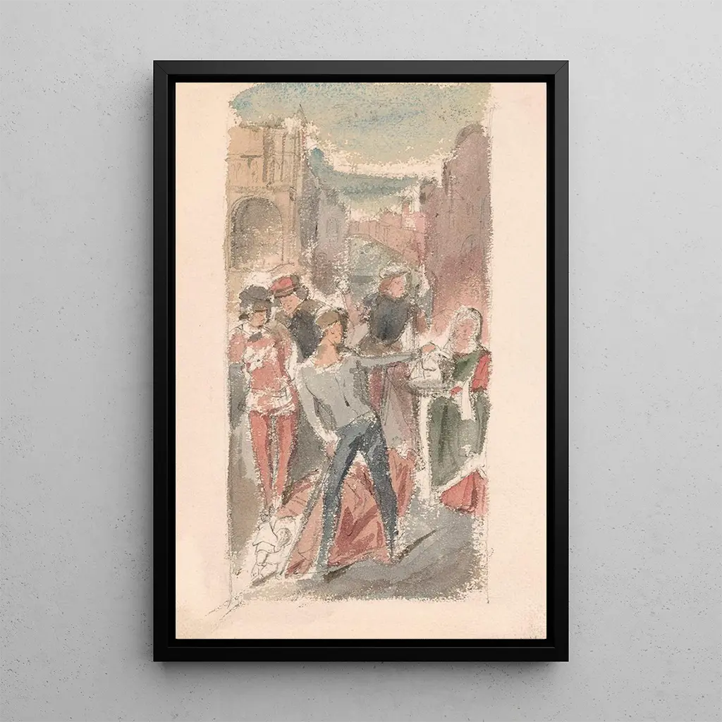 La impresión artística de la obra "Decapitación de San Juan Bautista" de Nicaise De Keyser nos sumerge en una escena a la vez trágica y cautivadora. La composición se caracteriza por un juego de luz intensa que resalta los rostros de los personajes, acentuando la emoción del momento. Los colores oscuros, dominados por matices de rojo y negro, crean una atmósfera pesada, casi palpable. La técnica de De Keyser, que combina realismo y expresionismo, permite sentir la tensión dramática de esta escena bíblica. Cada detalle, desde los pliegues hasta las expresiones faciales, contribuye al impacto visual y emocional de esta obra.
