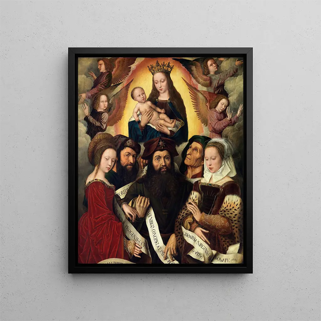 En el vasto panorama de la historia del arte, algunas obras se destacan por su capacidad para trascender el tiempo y tocar el alma. La "Deipara Vierge" de Ambrosius Benson es una de esas creaciones emblemáticas, un reflejo auténtico de la espiritualidad y la belleza del Renacimiento. Esta obra, que encarna la dulzura y la majestuosidad de la Virgen María, invita al espectador a una contemplación profunda. La representación de la maternidad sagrada, impregnada de ternura, ofrece una experiencia visual y emocional única, sumergiendo la mirada en un universo a la vez sereno y cargado de simbolismo. Estilo y singularidad de la obra La "Deipara Vierge" se distingue por su estilo refinado y su composición armoniosa. Benson, maestro de la pintura flamenca, logra capturar la esencia misma de su tema con una precisión y una delicadeza notables. Los colores, elegidos con cuidado, evocan una paleta suave y tranquilizadora, mientras que la luz juega un papel central en la valorización de las formas. Los pliegues del vestido de la Virgen, realizados con un sentido agudo del detalle, testimonian la habilidad técnica del artista. Cada pliegue parece animado, cada sombra añade una dimensión adicional a la escena. La postura de la Virgen, a la vez majestuosa y accesible, crea un vínculo íntimo con el espectador, invitándolo a compartir un momento de recogimiento. El artista y su influencia Ambrosius Benson, nacido a finales del siglo XV, supo imponerse como uno de los pintores más influyentes de su época. Formado en el taller de grandes maestros, desarrolló un estilo que combina tradición e innovación. Su obra se caracteriza por una atención minuciosa a los detalles y una capacidad para traducir emociones complejas a través de rostros expresivos. Benson también fue un precursor en el uso de la luz para crear atmósferas íntimas, una técnica que inspiró a numerosos artistas del Renacimiento y más allá. Su contribución al arte sacro es indudable, y la "Deipara Vierge" es un ejemplo perfecto, que testimonia su genio creativo y su profundo compromiso espiritual. Una decoración mural de excepción firmada