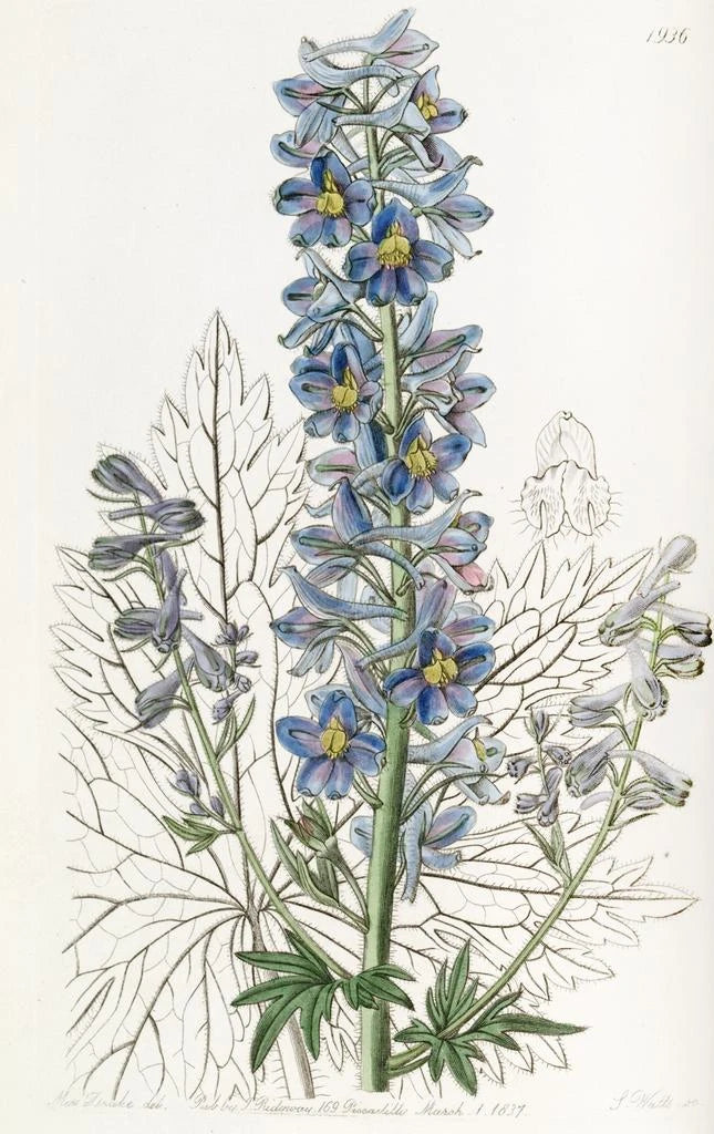 Impresión artística | Delphinium de las montañas - Sydenham Edwards