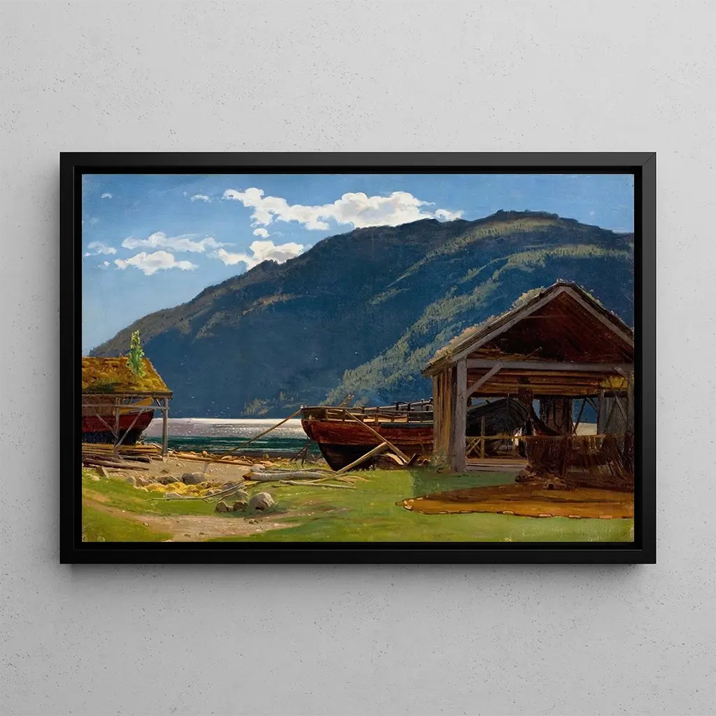 Amaldus Nielsen, pintor noruego del siglo XIX, es reconocido por su capacidad para capturar la esplendor de los paisajes nórdicos. Influenciado por el movimiento romántico, supo integrar elementos de la naturaleza en sus obras, transformándolas en verdaderos poemas visuales. Nielsen fue activo en una época en la que el arte escandinavo comenzaba a hacerse un nombre en la escena europea, y sus paisajes contribuyeron a establecer una identidad artística fuerte para Noruega. Su trabajo está marcado por una sensibilidad a la luz y a los colores, lo que le permitió crear composiciones a la vez realistas y poéticas.
