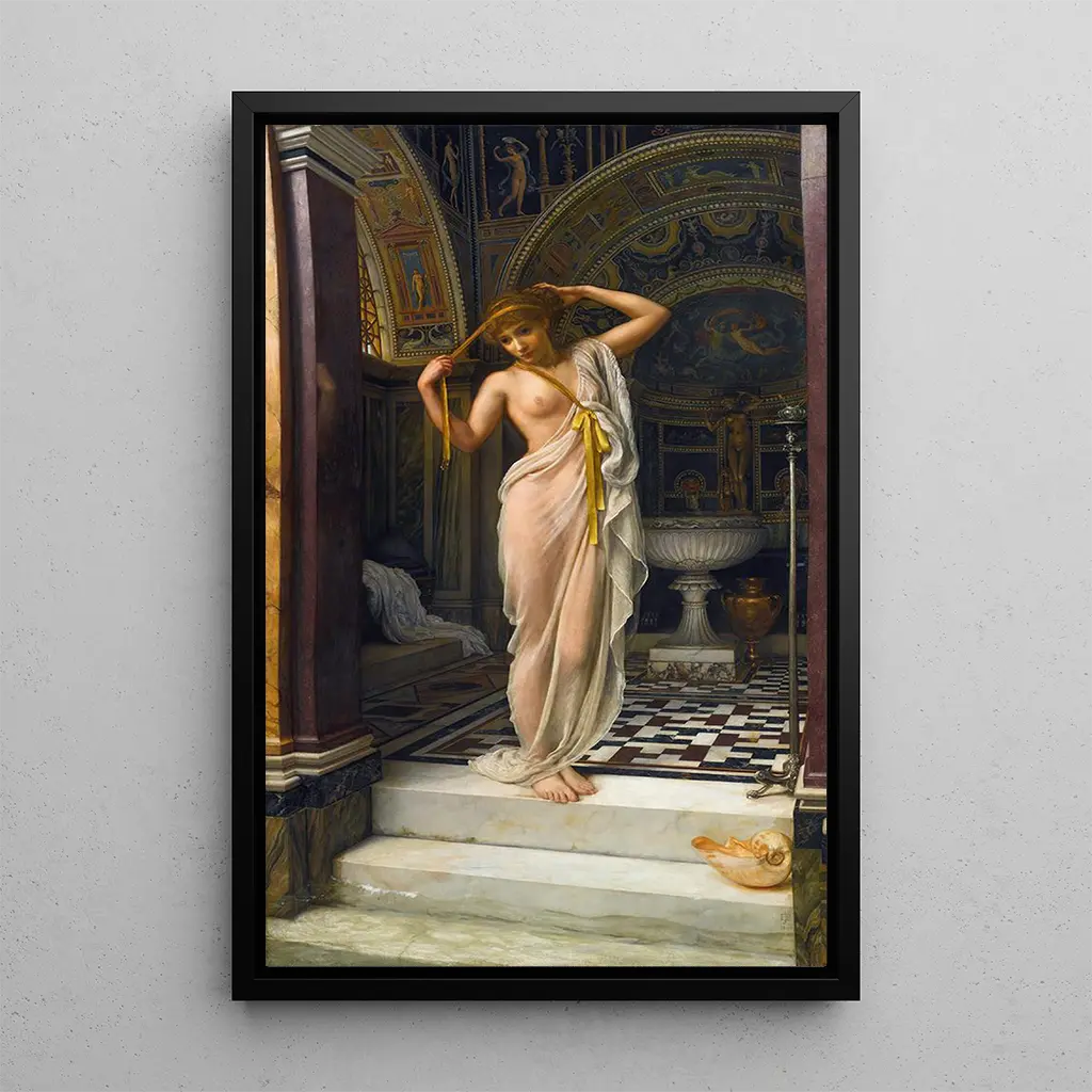 La impresión artística de Diadumène de Edward John Poynter es una verdadera celebración de la belleza ideal, inspirada por el arte antiguo. Este lienzo representa a una joven mujer, con la cabeza adornada con una corona, en una pose graciosa que evoca la delicadeza y la fuerza. Los colores cálidos y dorados, combinados con detalles minuciosos, crean una atmósfera de serenidad y majestuosidad. Poynter logra capturar la esencia de la belleza femenina a través de un juego de luz y sombra, haciendo que esta obra sea a la vez atemporal y cautivadora.
