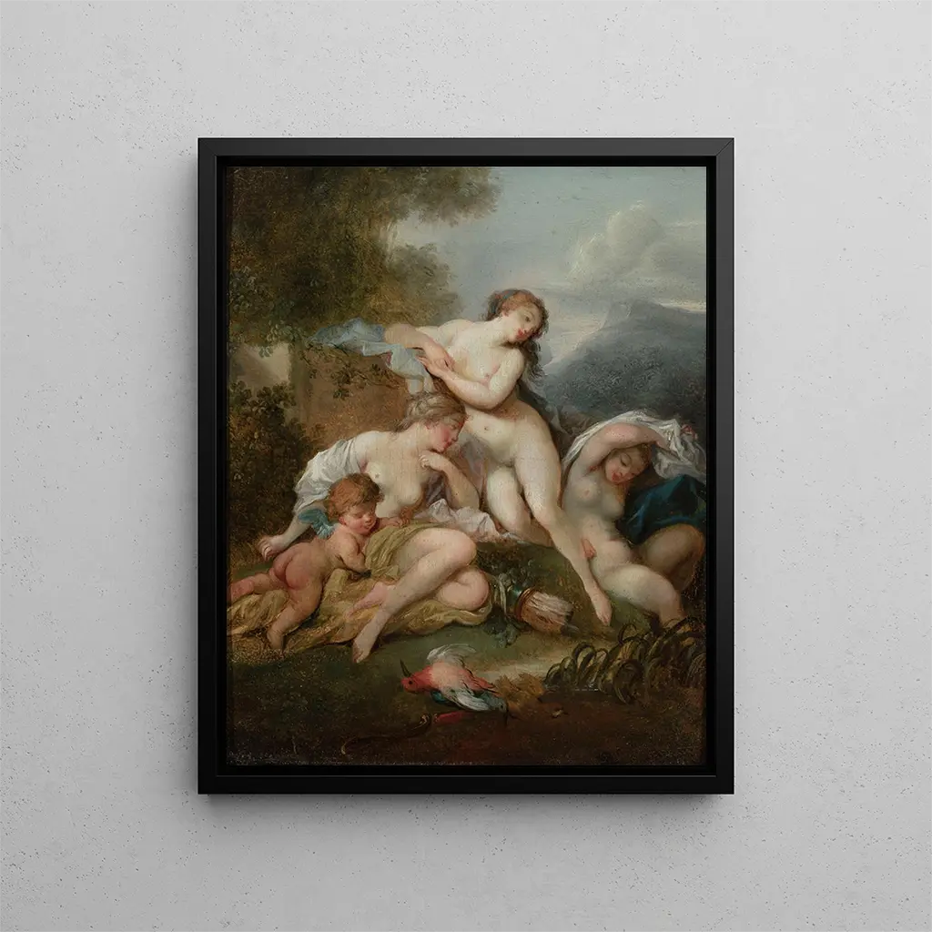 En la vasta panorámica de la historia del arte, algunas obras se destacan por su capacidad para capturar la esencia misma de la naturaleza y de la mitología. "Diane y las ninfas - Anónimo" es una de esas creaciones que, por su composición armoniosa y su ambiente cautivador, nos transporta a un mundo donde lo divino y lo terrenal se encuentran. Esta obra, aunque firmada por un artista anónimo, habla por sí misma gracias a la finura de sus detalles y a la profundidad de su tema. Evoca a la diosa de la caza, Diane, rodeada de sus ninfas, símbolos de belleza y pureza, ofreciendo así una mirada fascinante sobre la mitología gréco-romana.