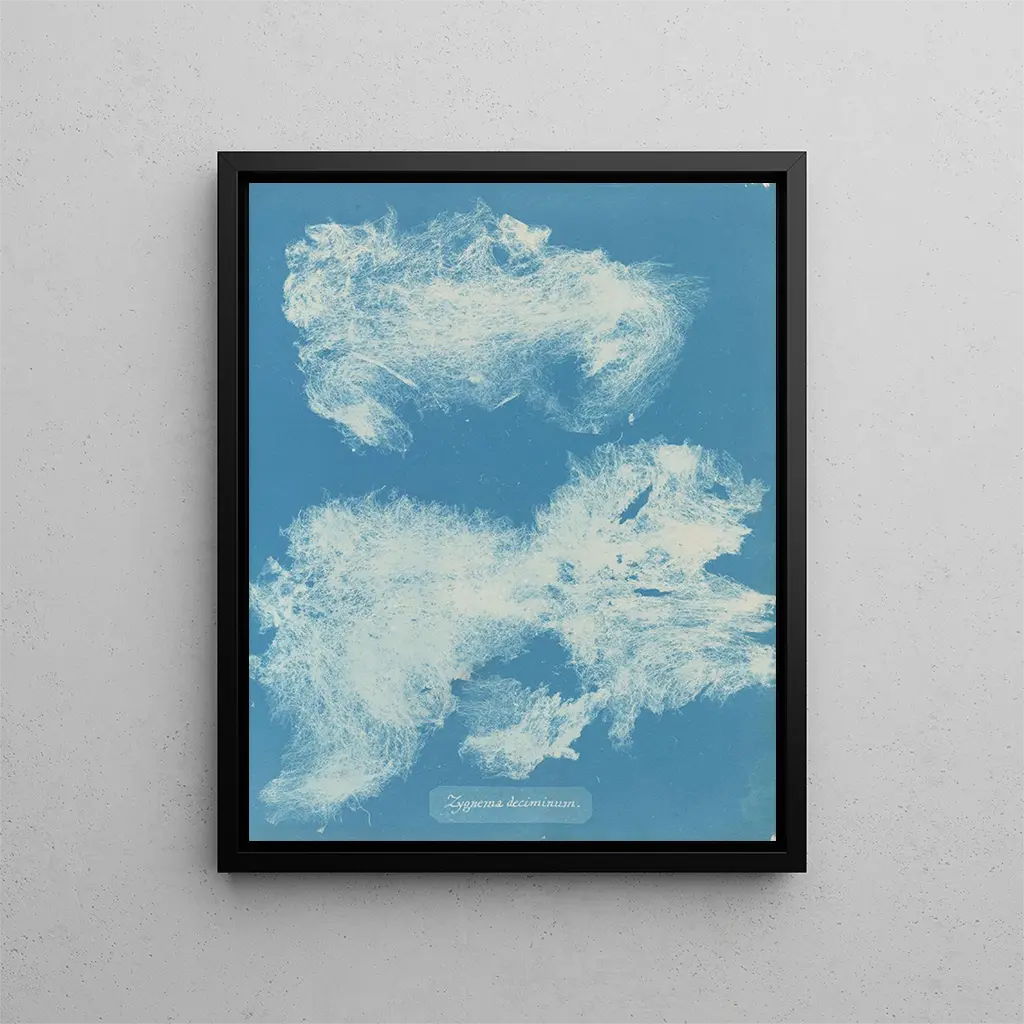 En el fascinante universo de la historia del arte, algunas obras emergen por su audacia y singularidad. La impresión artística Dîmes de Zygnema - Anna Atkins es una de esas creaciones que cautivan la vista y la mente. Esta obra, en la encrucijada de la ciencia y el arte, testimonia una época en la que la botánica y la estética se entrelazaban para dar lugar a una forma de expresión inédita. Anna Atkins, pionera de la fotografía botánica, supo inmortalizar la belleza de las plantas mediante una técnica innovadora. En esta obra, cada detalle está cuidadosamente pensado, cada sombra y cada luz revelan una profundidad insospechada, invitando al espectador a un viaje sensorial a través de la naturaleza.