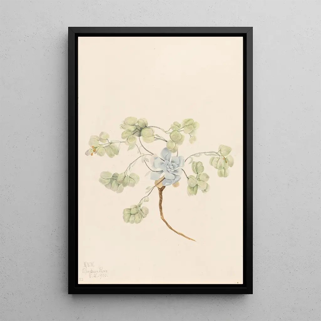 La reproducción de la obra Double Bladderpod Physaria didymocarpa de Mary Vaux Walcott nos sumerge en un universo floral lleno de delicadeza. Los colores suaves y los detalles minuciosos de esta impresión artística revelan la belleza efímera de la naturaleza. La composición, a la vez simple y refinada, invita a la contemplación de las formas orgánicas y las tonalidades sutiles. Walcott, con su técnica precisa, logra capturar la esencia misma de esta planta, evocando una atmósfera serena y tranquilizadora. Cada pétalo parece vibrar bajo la luz, creando un diálogo entre el arte y lo vivo.