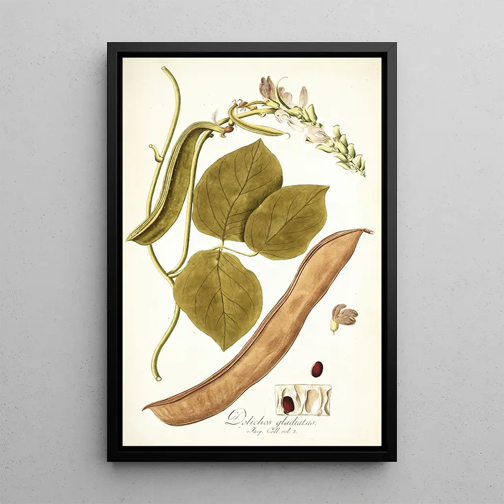 La impresión artística de Dolichos gladiaius es una pieza decorativa ideal para enriquecer cualquier espacio, ya sea una sala de estar, una oficina o un dormitorio. Su calidad de impresión y su fidelidad a los detalles de la obra original la convierten en una opción atractiva para los amantes del arte y la botánica. Al integrar este cuadro en tu decoración, aportas un toque de elegancia y exotismo, celebrando la belleza de la naturaleza. Este cuadro no solo es un elemento decorativo, sino también una fuente de inspiración y contemplación en el día a día.
