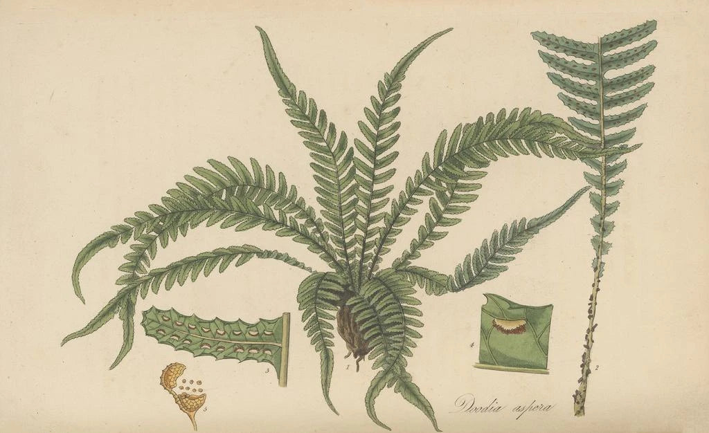 William Jackson Hooker, botánico e ilustrador británico del siglo XIX, desempeñó un papel crucial en la documentación de la flora mundial, en particular la de Australia. Su trabajo fue influenciado por las exploraciones botánicas de su época, y supo combinar ciencia y arte en sus ilustraciones. Hooker fue el primer director del jardín botánico de Kew, donde contribuyó a la clasificación y conservación de las especies vegetales. Doodia Aspera es un ejemplo perfecto de su enfoque meticuloso y de su compromiso con la naturaleza, demostrando la importancia de la botánica en la comprensión de nuestro entorno.