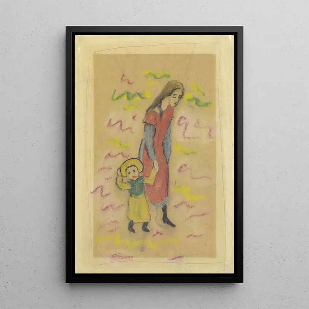 Dans l'œuvre "Deux enfants", August Macke capture un moment de pure innocence et de complicité. La composition est dominée par des couleurs vives et joyeuses, typiques du style fauviste, qui insufflent une atmosphère de légèreté et de bonheur. Les deux enfants, vêtus de vêtements colorés, semblent plongés dans un univers de rêve, où chaque détail est soigneusement pensé pour évoquer la douceur de l'enfance. Les formes arrondies et les lignes fluides renforcent cette impression de mouvement et de vie, faisant de cette toile une véritable ode à la jeunesse.