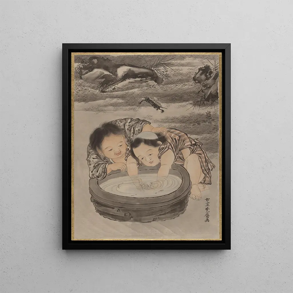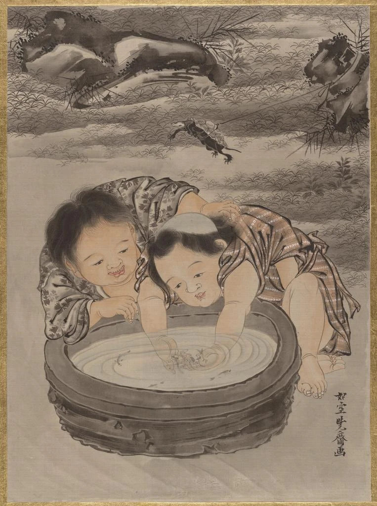 Dos niños jugando con peces de colores - Kawanabe Kyōsai