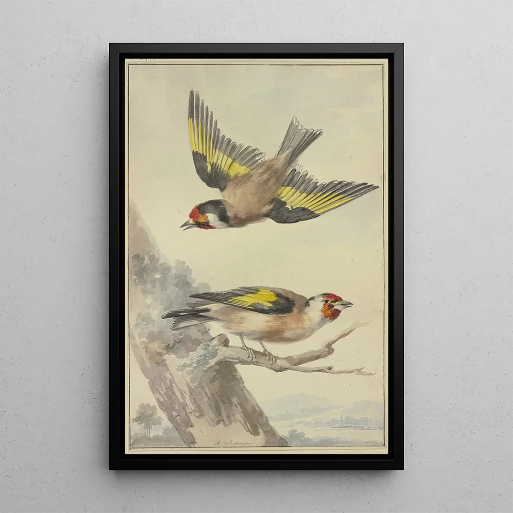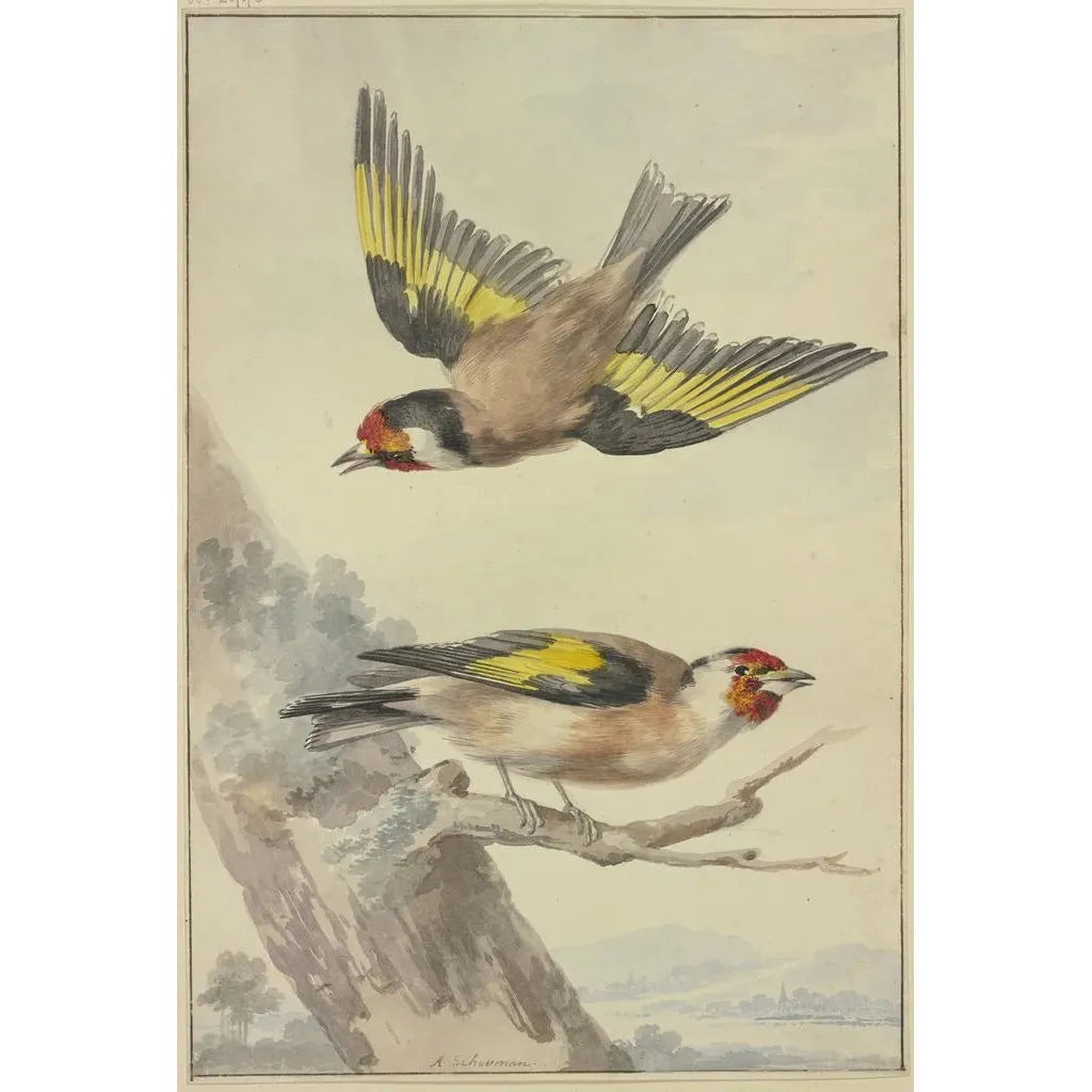 "Deux chardonnerets" es una obra que celebra la belleza y la vivacidad de estas aves coloridas. Aert Schouman, con su talento inigualable, logra capturar la esencia misma de estas criaturas, sus plumajes brillantes contrastando con un fondo delicado. Los chardonnerets, representados en una postura dinámica, parecen listos para volar, infundiendo una energía alegre a la composición. Los colores cálidos y los detalles minuciosos reflejan un saber hacer excepcional, invitando al espectador a sumergirse en este mundo aviar donde cada pluma es una obra de arte en sí misma.