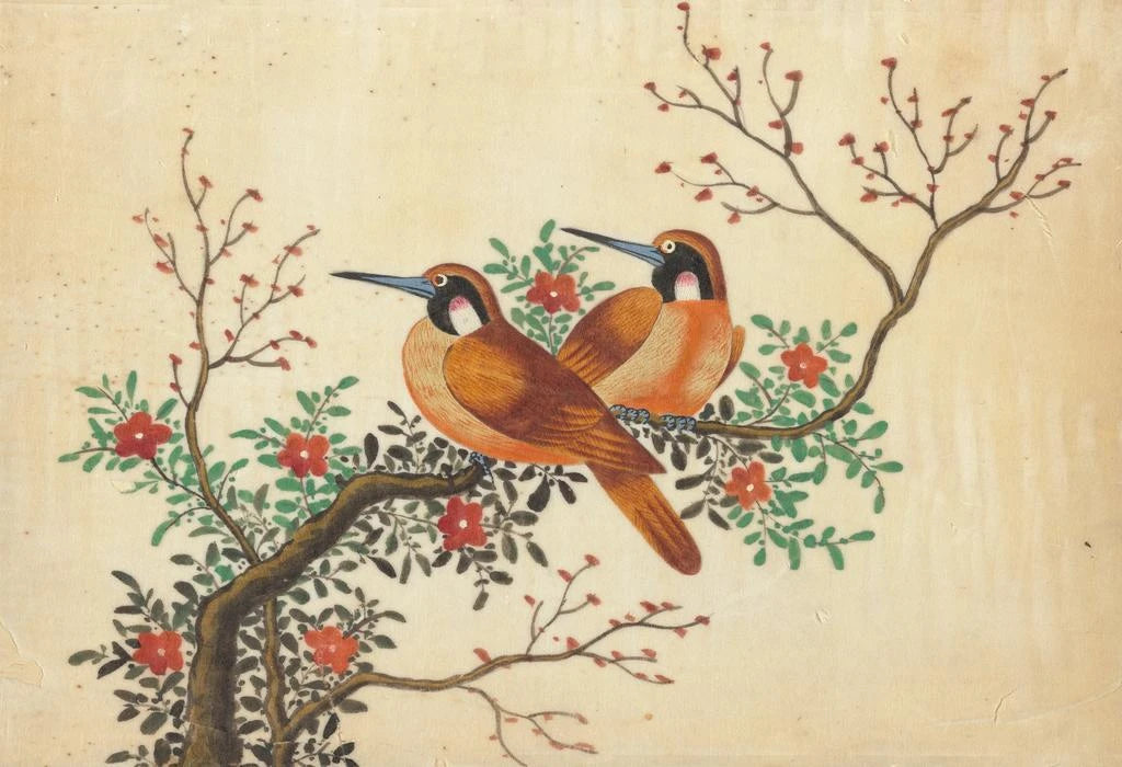 Dos pájaros en una rama de árbol en flor - Anónimo