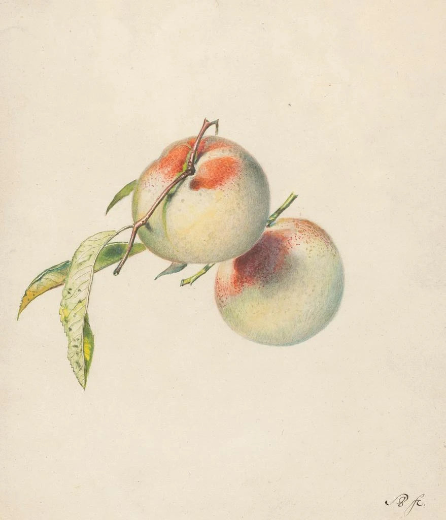 Impresión artística | Dos duraznos en sus tallos - Albertus Steenbergen