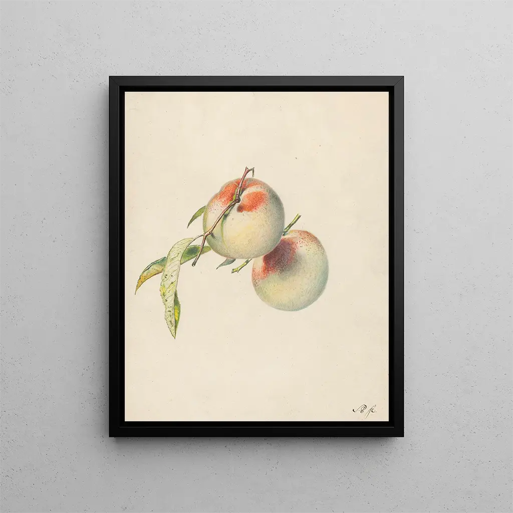 Integrar la impresión artística "Dos duraznos en sus tallos - Albertus Steenbergen" en su interior es elegir aportar un toque de elegancia atemporal a su decoración mural. Esta obra, además de ser un homenaje a la