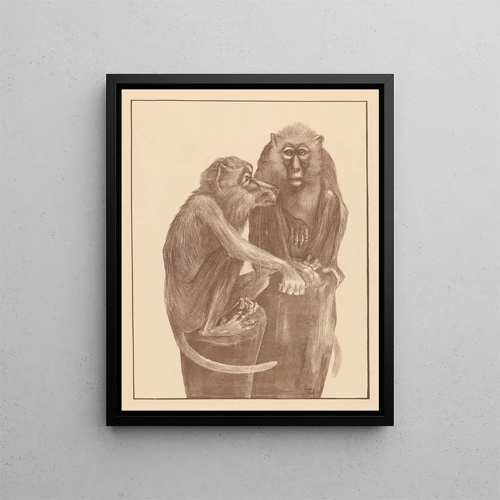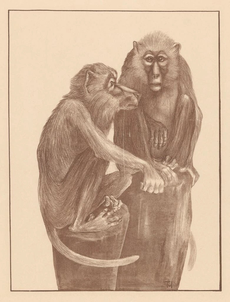 Dos monos perros sobre troncos de árboles - Theo van Hoytema