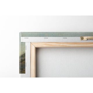 El cuadro, marcado por matices de azul, beige y verde, ilustra el dominio de Corot en el tratamiento de la luz y la atmósfera. Las pequeñas casas a lo lejos, anidadas entre las dunas, añaden un toque de vida rural discreta, creando un equilibrio perfecto entre la figura humana y el paisaje natural. Esta obra refleja la poesía de lo cotidiano y celebra el vínculo atemporal entre el hombre y su entorno.