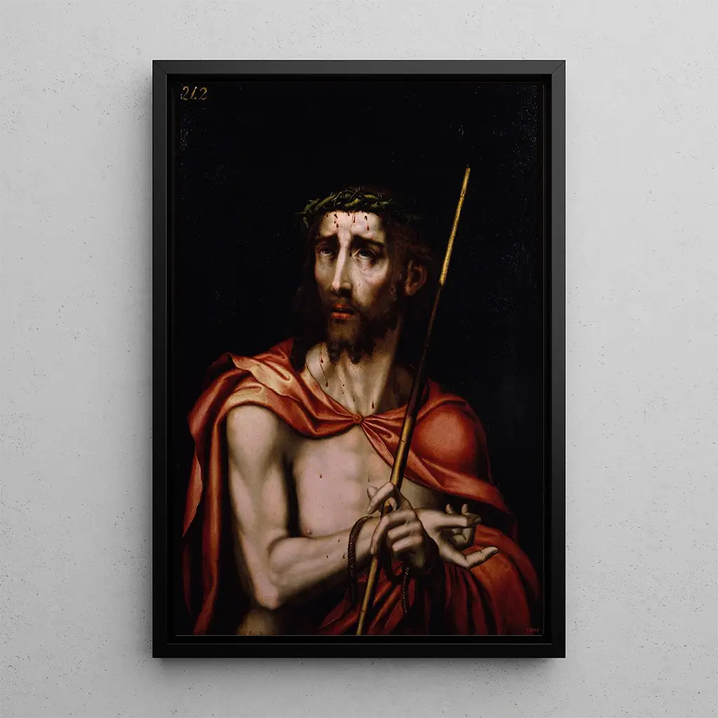 Luis de Morales, activo en el siglo XVI, es considerado uno de los más grandes pintores de la Renaissance española. Influenciado por las tradiciones flamencas e italianas, supo desarrollar un estilo único, combinando realismo y espiritualidad. Morales dedicó gran parte de su carrera a la creación de obras religiosas, y "Ecce Homo" es un ejemplo emblemático. Su enfoque introspectivo y su capacidad para capturar la esencia del sufrimiento humano le valieron un lugar importante en la historia del arte. Su contribución a la impresión artística religiosa continúa inspirando a los artistas contemporáneos.