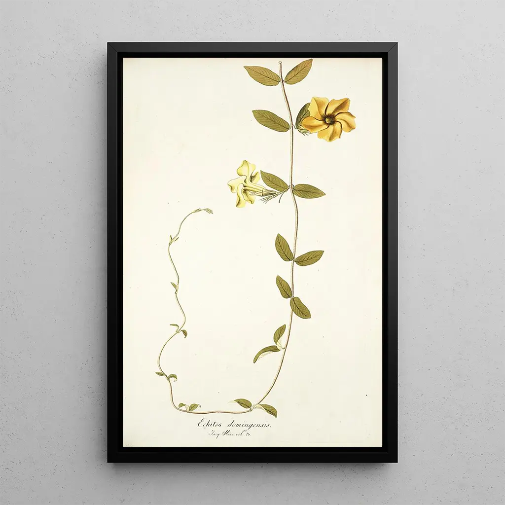 La impresión artística de 'Echites domingensis' es una elección ideal para embellecer su interior, ya sea en una sala de estar, una oficina o un dormitorio. Su calidad de impresión y fidelidad a los colores originales la convierten en una pieza de arte cautivadora que atrae la mirada. Este cuadro aporta un toque de frescura y serenidad a cualquier espacio, al mismo tiempo que celebra la belleza de la naturaleza. Al optar por esta impresión artística, no solo añade una obra de arte a su decoración, sino también un elemento de conversación que evoca la armonía entre el arte y la ciencia.