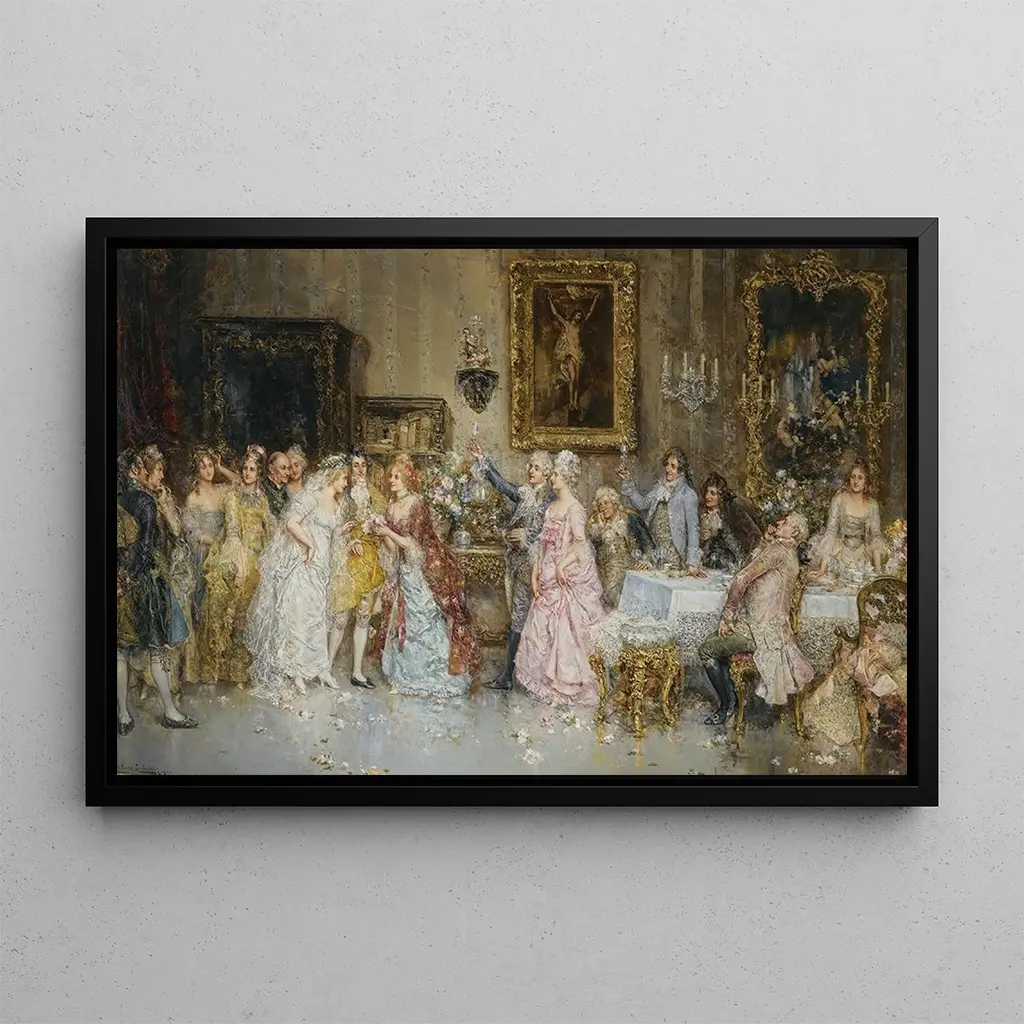 Le Banquet nuptial : une célébration de la vie et de l’amour Le Banquet nuptial de Juan Pablo Salinas est une œuvre vibrante qui évoque la joie et l’intimité d’une célébration. Les couleurs chaudes et lumineuses, telles que les rouges profonds et les ors éclatants, se mêlent pour créer une atmosphère festive et accueillante. La composition dynamique, où les personnages s’entrelacent dans une danse de convivialité, attire immédiatement le regard et invite à la contemplation. La technique de Salinas, qui allie réalisme et touches impressionnistes, donne vie aux détails, des visages souriants aux mets délicatement présentés sur la table. Chaque élément semble raconter une histoire, plongeant le spectateur dans l’effervescence d’un moment partagé. Juan Pablo Salinas : un maître du réalisme latino-américain Juan Pablo Salinas, artiste d’origine latino-américaine, a su capturer l’essence de la culture et des traditions de son époque à travers ses œuvres. Né au début du XXe siècle, il a été influencé par les mouvements artistiques européens tout en intégrant des éléments de son héritage culturel. Salinas a évolué dans un contexte où l’art était un moyen d’exprimer des identités et des récits locaux, ce qui lui a permis de se démarquer par son style unique. Le Banquet nuptial témoigne de cette fusion entre le classicisme et la modernité, tout en célébrant les valeurs communautaires et familiales chères à sa culture. Une adquisición decorativa aux múltiples atouts La reproducción del Banquet nuptial es una pieza decorativa ideal para enriquecer su interior, ya sea en una sala de estar, una oficina o un dormitorio. Su calidad de impresión garantiza una fidelidad notable a los colores y detalles del original, permitiendo así disfrutar de la obra como si estuviera frente al original. Con su atractivo estético, esta tela se convierte en un punto focal cautivador que suscita conversaciones y despierta emociones. Ofrecer o regalar esta impresión artística, es invitar a la magia de un momento festivo en su vida cotidiana, añadiendo un toque de elegancia a su decoración interior.