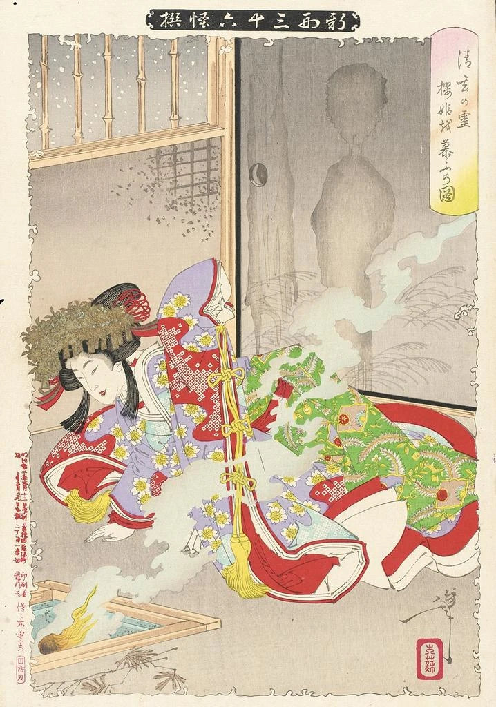 Impresión artística | El fantasma de Seigen acechando a Sakurahime - Tsukioka Yoshitoshi