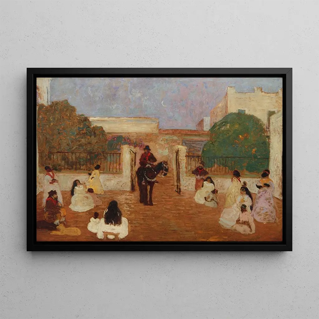 Pedro Figari, nacido en 1861, es un artista argentino cuya obra ha jugado un papel clave en el desarrollo del arte moderno en Argentina. Influenciado por las tradiciones folclóricas y los paisajes de su país, Figari supo integrar elementos de la cultura popular en sus creaciones. Su estilo único, que mezcla influencias europeas y locales, ha contribuido a forjar una identidad artística propia de Argentina. "El Gaucho Candioti" es una ilustración perfecta de su compromiso por representar la vida cotidiana y las tradiciones de su país, aportando al mismo tiempo un toque moderno a sus composiciones.