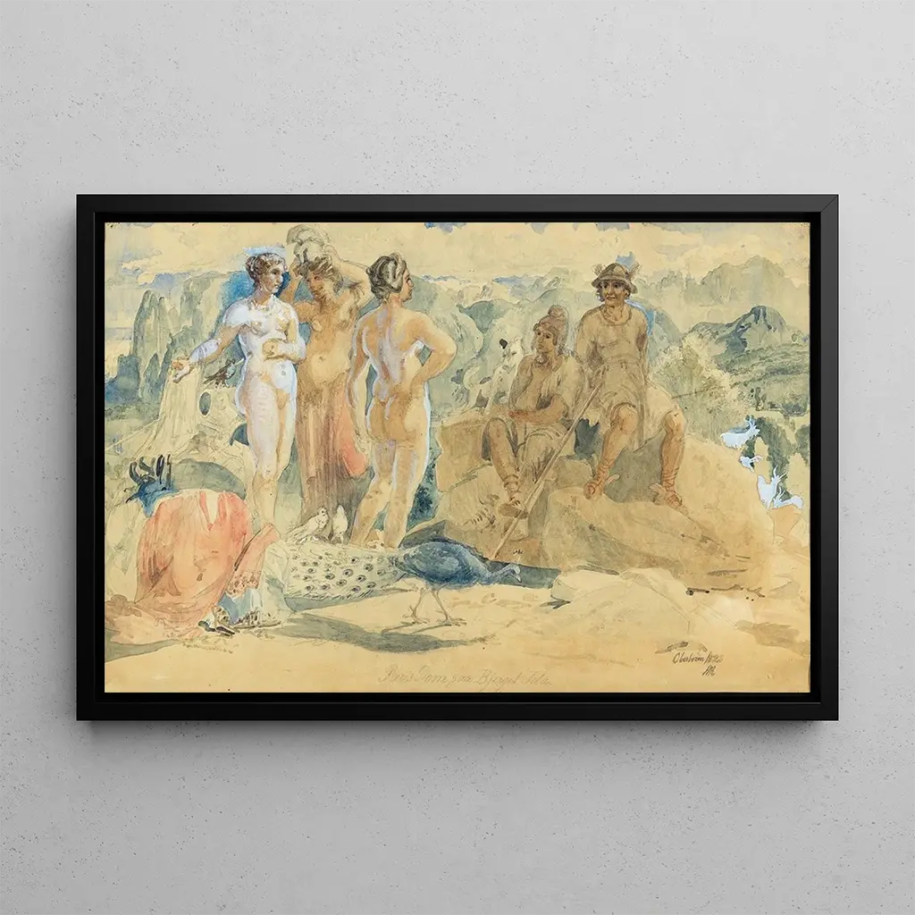 "Le Jugement de Pâris" es una obra cautivadora de Holger Roed, que ilustra un momento clave de la mitología griega. En esta escena vibrante, Páris, el príncipe troyano, se encuentra frente a tres diosas, cada una reclamando el título de la más bella. Los colores ricos y los detalles minuciosos crean una atmósfera a la vez dramática y envolvente. La técnica de Roed, combinando realismo y romanticismo, da vida a los personajes y a sus emociones, sumergiendo al espectador en un relato mitológico donde la belleza y el deseo están en el centro del conflicto.