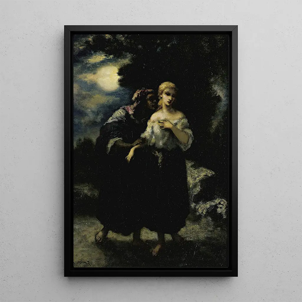 El Maléfice, obra emblemática de Narcisse Virgile Diaz de la Peña, evoca un universo místico donde la naturaleza y la imaginación se encuentran. La tela, rica en colores cálidos y matices delicados, retrata un paisaje encantador donde la luz se filtra a través del follaje. La técnica de la pintura al óleo, dominada con maestría, confiere a esta impresión artística una atmósfera a la vez soñadora y perturbadora. Las formas orgánicas se mezclan con elementos fantásticos, creando una composición que invita a la contemplación y a la evasión. Cada detalle, cada pincelada, parece susurrar secretos olvidados, transportando al espectador a un mundo donde la impresión artística cobra vida.