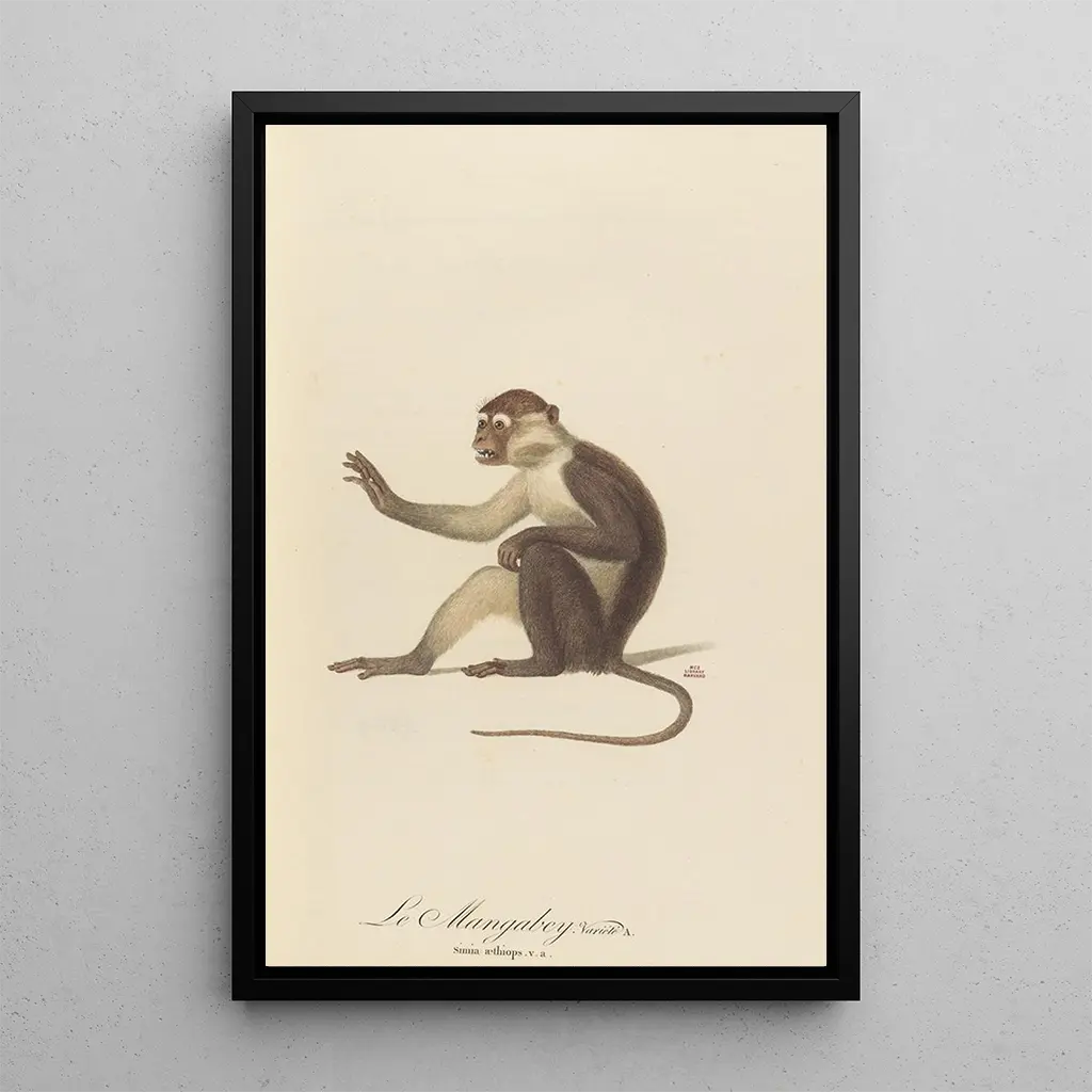 La impresión artística La Mangabey varié a de Jean-Baptiste Audebert es una obra fascinante que destaca la riqueza de la fauna. Con una paleta de colores vibrantes, Audebert logra capturar la vivacidad y la curiosidad de este primate. Los detalles minuciosos de su pelaje y la expresión de su rostro transmiten una impresión de vida y movimiento. El fondo, sutilmente trabajado, evoca el hábitat natural del mangabey, reforzando así el vínculo entre el animal y su entorno. Esta obra invita a una contemplación atenta, revelando la belleza y la complejidad del mundo animal.