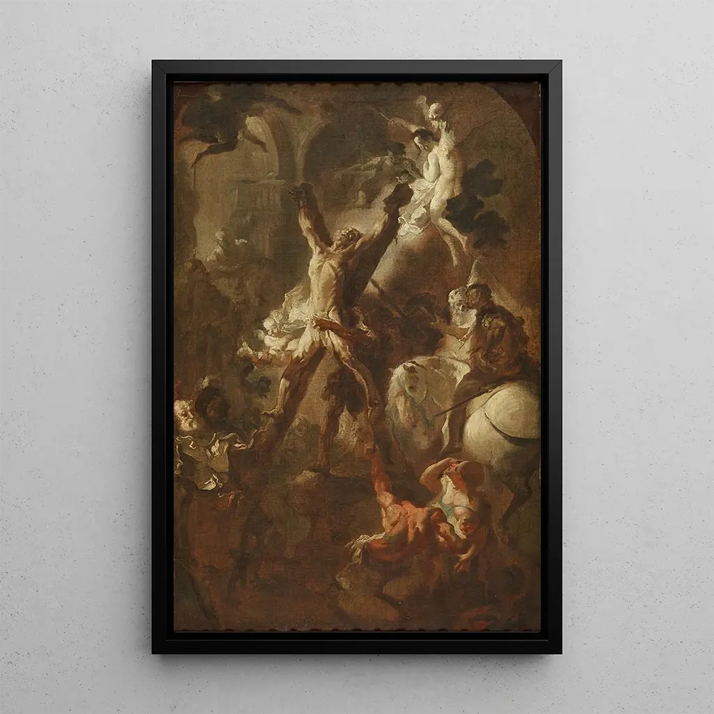 En La pasión de san Andrés, Franz Anton Maulbertsch retrata con intensidad dramática el sufrimiento del santo. Los colores vibrantes y los contrastes impactantes crean una atmósfera a la vez trágica y cautivadora. La composición, centrada en la figura del mártir, atrae inmediatamente la mirada y evoca una profunda empatía. Los detalles minuciosos de las expresiones y las posturas de los personajes refuerzan la narración visual, sumergiendo al espectador en un momento de tensión espiritual y física, donde la fe triunfa sobre el dolor.