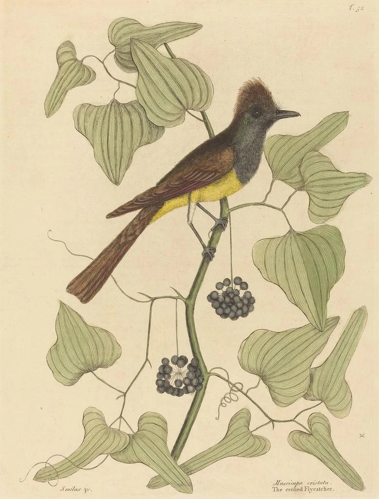 El mosquero huppé Muscicapa cristata - Mark Catesby